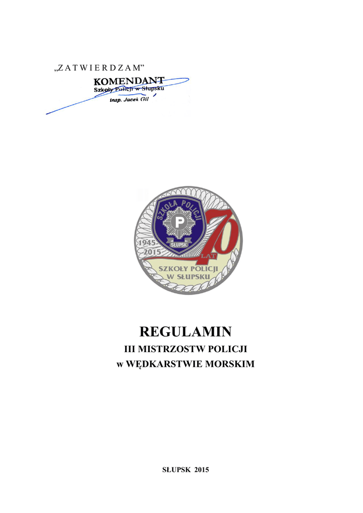 „Z A T W I E R D Z A M” REGULAMIN III MISTRZOSTW POLICJI w WĘDKARSTWIE MORSKIM SŁUPSK 2015 Rozdział I Organizatorem III Mistrzostw Polski Policji w Wędkarstwie Morskim jest Szkoła Policji w Słupsku. Głównym celem Mistrzostw jest integracja środowiska policyjnego oraz stworzenie okazji do propagowania zdrowego stylu życia jako sposobu do rozładowania stresu zawodowego. POSTANOWIENIA OGÓLNE §1 1. Mistrzostwa odbędą się w dniu 29.05.2015 r. 2. Zakwaterowanie uczestników Mistrzostw w ośrodku wypoczynkowym Ustka-Uroczysko w dniu 28.05.2015 r. od godziny 17.00. 3. O ewentualnej zmianie terminu zawodów zarejestrowani uczestnicy zostaną poinformowani drogą elektroniczną. §2 1. Mistrzostwa zostaną przeprowadzone na wodach morskich z jednostek pływających. 2. Wypłynięcie z portu Ustka nastąpi o godz. 6.00. 3. Rejs wędkarski trwa od 8 do 10 godz. Rozdział II WARUNKI UCZESTNICTWA §3 1. W Mistrzostwach uczestniczą dwuosobowe zespoły z: - komend wojewódzkich/Stołecznej Policji, - Komendy Głównej Policji, - Centralnego Biura Śledczego Policji, - Szkół Policji. 2. Z każdej z wymienionych w pkt 1 jednostek może się zgłosić więcej niż jeden zespół. §4 1. Liczba uczestników Mistrzostw jest ograniczona do 25 zespołów (50 osób). 2. Oficjalnego zgłoszenia zespołu do udziału w mistrzostwach dokonuje Komendant Główny/Wojewódzki/Stołeczny/CBŚP/Szkoły Policji za pośrednictwem komórki organizacyjnej właściwej w sprawach kadr. 2 3. Zgłoszenia indywidualne zespołów zostają wpisane na listę rezerwową. 4. Po zamknięciu listy zgłoszeń w terminie określonym w § 6 pkt 4 zostanie ona uzupełniona z listy rezerwowej do wyczerpania limitu miejsc określonego w pkt 1. Decyduje kolejność zgłoszeń, z zastrzeżeniem, że w pierwszej kolejności na listę uczestników wpisywane są zespoły z garnizonów, które nie dokonały oficjalnego zgłoszenia reprezentacji. §5 Za udział w zawodach pobiera się opłatę startową w wysokości 290 zł od uczestnika. Opłata obejmuje koszt: a) zakwaterowania i wyżywienia na terenie ośrodka wypoczynkowego Ustka-Uroczysko od kolacji w dniu 28.05.2015 r. do śniadania w dniu 30.05.2015 r., b) wynajmu łodzi, c) śniadania i obiadu na łodzi. §6 1. Do dnia 31.03.2014 r.: - Szkoła Policji w Słupsku prześle do jednostek organizacyjnych Policji, o których mowa w § 3 pkt 1, regulamin Mistrzostw, - na stronie internetowej Szkoły Policji w Słupsku zamieszczona zostanie informacja o rozpoczęciu przyjmowania zgłoszeń reprezentacji do udziału w Mistrzostwach. 2. Zespoły w terminie do dnia 30.04.2015 r. przesyłają do Szkoły Policji w Słupsku na adres [email protected] zgłoszenie zawierające dane identyfikacyjne zawodników, w tym: a) skład reprezentacji (stopień, imię i nazwisko policjantów), b) komendę wojewódzką Policji, c) jednostkę macierzystą, w której policjanci pełnią służbę, d) adres resortowej poczty e-mail oraz numery telefonów, e) dane do faktury. 3. Przesłanie do Szkoły Policji w Słupsku zgłoszenia zespołu jest równoznaczne z akceptacją przez zawodników Regulaminu III Mistrzostw Policji w Wędkarstwie Morskim. 4. Lista zgłoszeń zostanie zamknięta 04.05.2015 r. 5. Zespołom zakwalifikowanym do udziału w Mistrzostwach zostanie przekazany drogą elektroniczną numer konta, na które w terminie 7 dni od otrzymania e-maila należy przekazać opłatę startową. 6. W przypadku nieuiszczenia opłaty startowej w terminie określonym w § 6 pkt 5 zespół zostanie wykreślony z listy uczestników, o czym zostanie powiadomiony drogą elektroniczną. Jego miejsce zajmie zespół z listy rezerwowej wg zasad określonych w § 4 pkt 4, któremu niezwłocznie zostanie przekazany drogą elektroniczną numer konta, na które należy przekazać opłatę startową. 7. Opłaty startowe przekazane po terminie określonym w § 6 pkt 5 zostaną zwrócone na konto, z którego dokonano przelewu, z ewentualnym potrąceniem kosztów operacji bankowych. 8. Opłaty startowe wniesione przez reprezentacje nie podlegają zwrotowi w przypadku: a) niestawienia się na Mistrzostwa, b) rezygnacji z Mistrzostw w terminie po 15.05.2015 r. 3 9. W przypadku zmian osobowych w zespołach nowe dane identyfikacyjne zawodników należy przesłać drogą elektroniczną w terminie do 15.05.2015 r. Rozdział III ORGANIZACJA I PRZEBIEG MISTRZOSTW §7 1. Otwarcie Mistrzostw i odprawa techniczna odbędą się o godz. 20.00 na terenie Ośrodka Szkoleniowo-Wypoczynkowego w Ustce-Uroczysku w dniu poprzedzającym Mistrzostwa. 2. W czasie odprawy technicznej omówione zostaną zasady organizacyjne oraz odbędzie się losowanie sektorów (stanowisk) i jednostek pływających dla poszczególnych uczestników. 3. W dniu zawodów o godz. 5.45 w porcie Ustka nastąpi zaokrętowanie uczestników. 4. W czasie płynięcia na łowisko uczestnicy przygotowują sprzęt wędkarski. §8 1. Na każdej jednostce pływającej będzie znajdować się jeden sędzia zawodów. 2. Zawody będą odbywały się w dwóch turach z przerwą. 3. W przerwie pomiędzy turami nastąpi zmiana sektora – stanowiska każdego zawodnika. §9 1. Obowiązują następujące sygnały: a) pierwszy – rozpoczęcie łowienia, b) drugi – zakończenie łowienia, c) „wędki z wody” i „wolno łowić” (przy zmianie miejsca jednostki pływającej, przy zmianie burty lub stanowiska). § 10 1. Uczestnik zobowiązany jest znać i przestrzegać przepisy określone w Ustawie z dnia 19 grudnia 2014 r. o rybołówstwie morskim i w aktach pokrewnych. 2. Ryby, które znajdują się w okresie ochronnym lub takie, których wymiar jest mniejszy od ustalonego w przepisach, należy natychmiast po złowieniu wypuścić do wody. 3. Każdy uczestnik jest zobowiązany zapewnić sobie pojemnik na złowione ryby. § 11 1. Jeśli podczas holu ryby nastąpi sygnał kończący łowienie, zawodnik musi natychmiast zasygnalizować to okrzykiem „ryba”. Ryba ta zaliczana