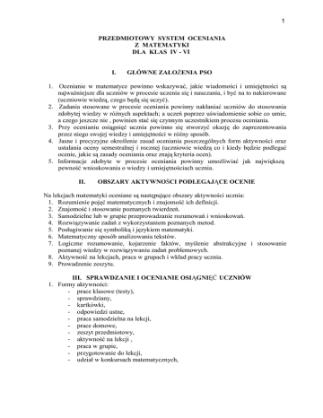 1 PRZEDMIOTOWY SYSTEM OCENIANIA Z MATEMATYKI DLA