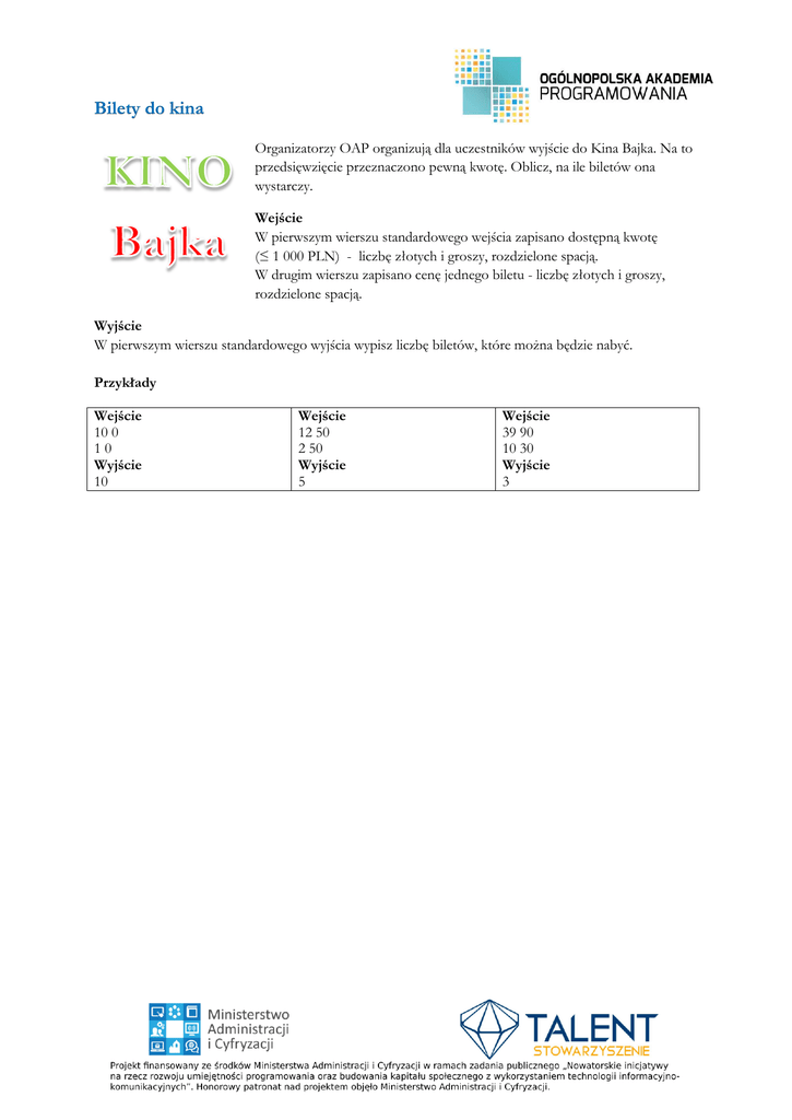 Bilety do kina - Zadania.oig.edu.pl