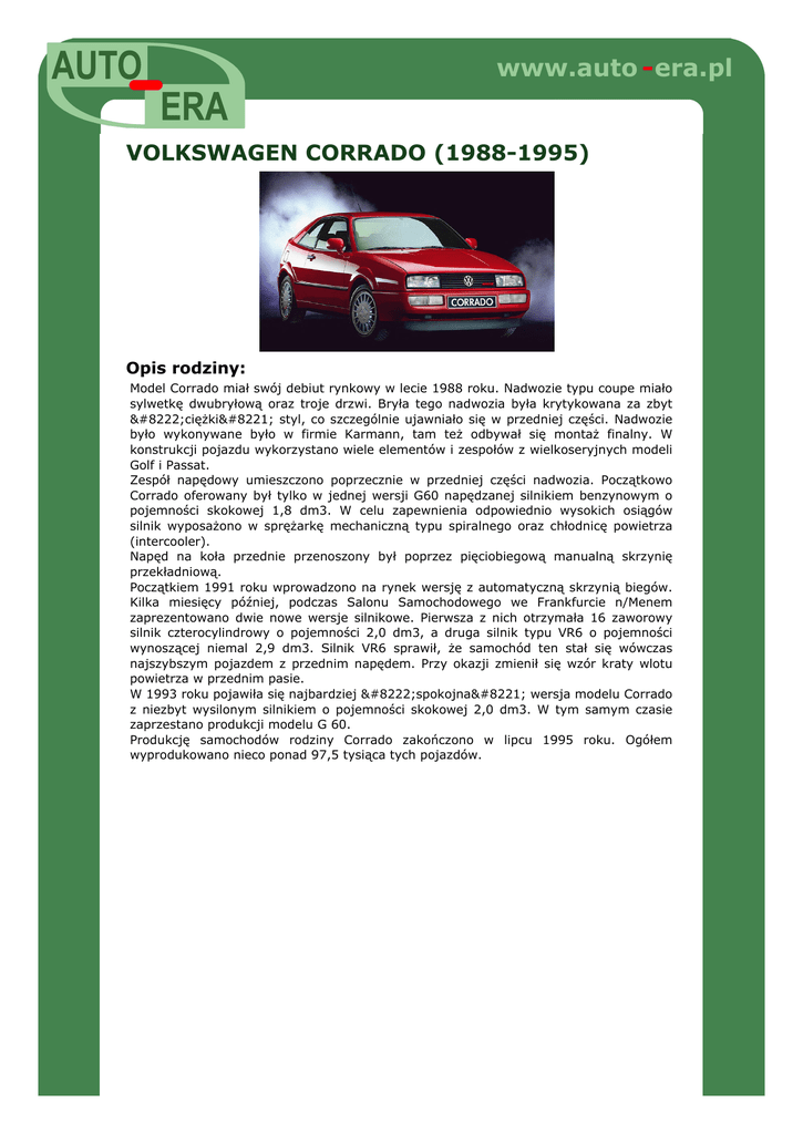 Opis rodziny: VOLKSWAGEN CORRADO. - AUTO-ERA
