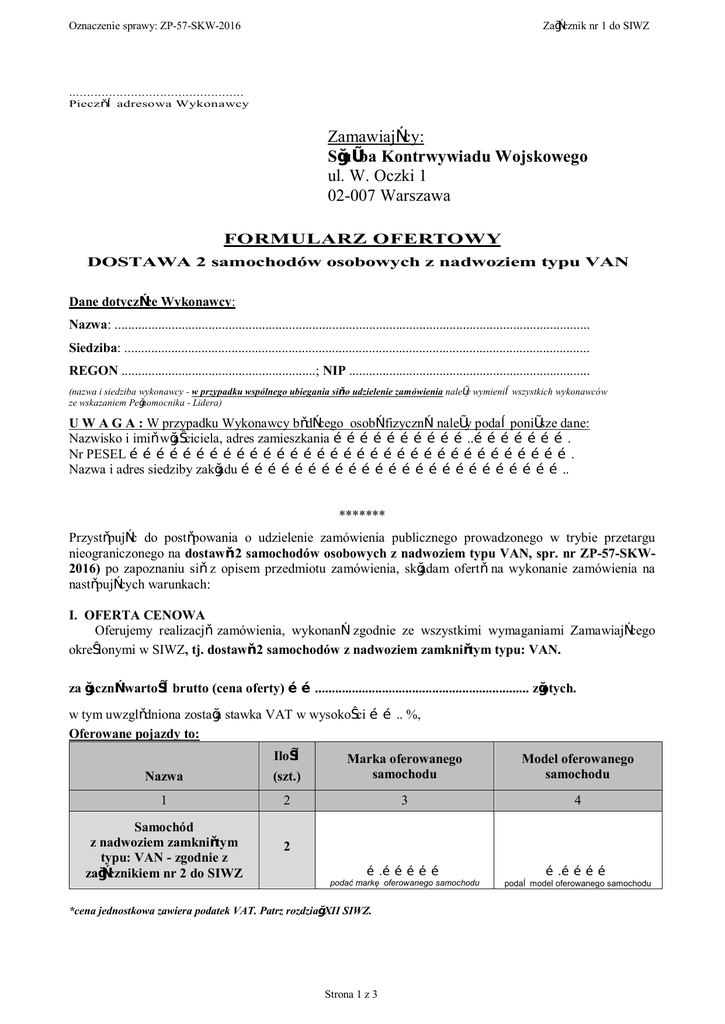 Formularz ofertowy - Służba Kontrwywiadu Wojskowego