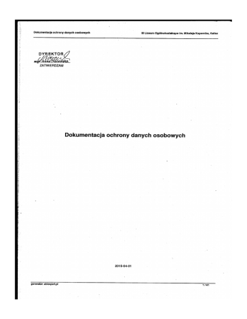Dokumentacja ochrony danych osobowych IIILO Kalisz