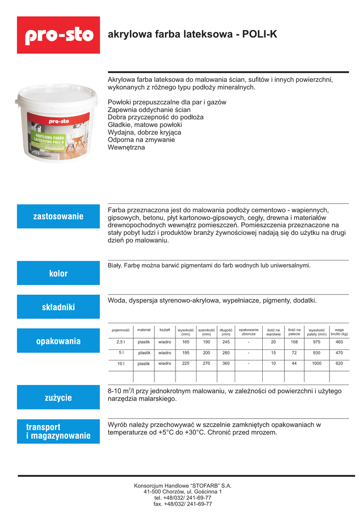 Akrylowa farba lateksowa STOFARB - POLI-K - Hi