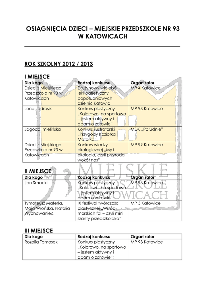OSIĄGNIĘCIA DZIECI – MIEJSKIE PRZEDSZKOLE NR 93 W
