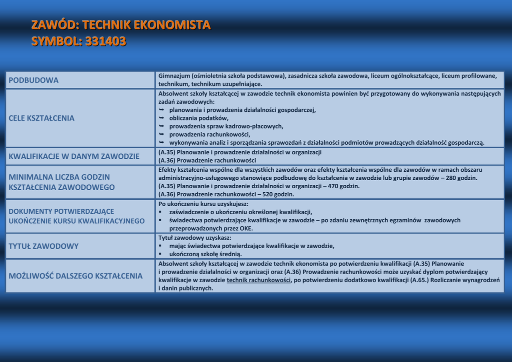 ZAWÓD: TECHNIK EKONOMISTA SYMBOL: 331403