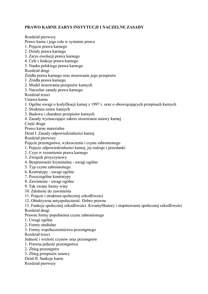 PRAWO KARNE ZARYS INSTYTUCJI I NACZELNE ZASADY