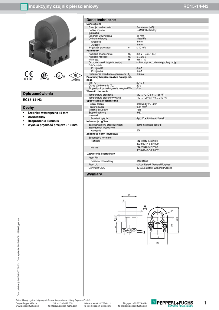 1 indukcyjny czujnik pierścieniowy RC15 14 N3