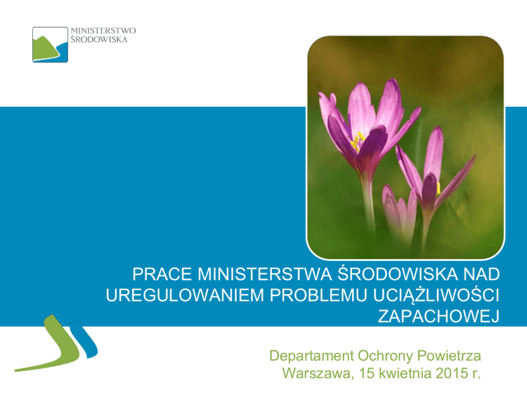 PRACE MINISTERSTWA ŚRODOWISKA NAD UREGULOWANIEM PROBLEMU UCIĄŻLIWOŚCI ZAPACHOWEJ Departament Ochrony Powietrza Warszawa, 15 kwietnia 2015 r. PRACE MINISTERSTWA ŚRODOWISKA NAD KODEKSEM PRZECIWDZIAŁANIA UCIĄŻLIWOŚCI ZAPACHOWEJ Agenda Obecne uregulowania problemu uciążliwości zapachowej Prace legislacyjne prowadzone przez resort środowiska Prace pozalegislacyjne Proponowane działania – Kodeks przeciwdziałania uciążliwości zapachowej 2 Obecne uregulowania problemu uciążliwości zapachowej Wprowadzanie substancji zapachowo czynnych jest obecnie pośrednio regulowane w ustawie z dnia 27 kwietnia 2001 r. – Prawo ochrony środowiska (Dz. U. z 2013 r. poz. 1232, z późn. zm. ) - art. 362 ust. 1, art. 363, art. 378 ust. 1. Kwestie mające związek z emisją odorów zawarte są także w regulacjach dotyczących ograniczania negatywnego wpływu produkcji zwierzęcej (fermy drobiu, trzody chlewnej) na otoczenie, określonych w następujących aktach prawnych: 1) ustawa z dnia 10 lipca 2007 r. o nawozach i nawożeniu (Dz. U. Nr 147, poz. 1033, z późn. zm.); 2) rozporządzenie Ministra Środowiska z dnia 23 grudnia 2002 r. w sprawie szczególnych wymagań, jakim powinny odpowiadać programy działań mających na celu ograniczanie odpływu azotu ze źródeł rolniczych (Dz. U. z 2003 r. Nr 4, poz. 44); 3 Obecne uregulowania problemu uciążliwości zapachowej c.d. 3) Rozporządzenie Ministra Rolnictwa i Gospodarki Żywnościowej z dnia 7 października 1997 r. w sprawie warunków technicznych, jakim powinny odpowiadać budowle rolnicze i ich usytuowanie (Dz. U. z 2014 r. poz.81); 4) Rozporządzenie Ministra Infrastruktury z dnia 12 kwietnia 2002 r. w sprawie warunków technicznych, jakim powinny odpowiadać budynki i ich usytuowanie (Dz. U. Nr 75, poz. 69, z późn. zm.); Kodeks dobrej praktyki rolniczej – praktyki i procedury mające na celu ograniczenie emisji substancji zapachowoczynnych z produkcji rolniczej. 4 Obecne uregulowania problemu uciążliwości zapachowej c.d. Rozporządzenie Ministra Środowiska z dnia 26 stycznia 2010 r. w sprawie wartości odniesienia dla niektórych substancji w powietrzu (Dz. U. z 2010 r. Nr 16, poz. 87) - 167 substancji, w tym również dla substancji zapachowo czynnych takich jak: amoniak, dimetyloamina, merkaptany czy siarkowodór. Rozporządzenie Ministra Gospodarki z dnia 21 listopada 2005 r. w sprawie warunków technicznych, jakim powinny odpowiadać bazy i stacje paliw płynnych, rurociągi przesyłowe dalekosiężne służące do transportu ropy naftowej i produktów naftowych i ich usytuowanie (Dz. U. z 2014 r., poz. 1853). 5 Obecne uregulowania problemu uciążliwości zapachowej c.d. Zgodnie z przepisami art. 201 oraz 204 ustawy Poś instalacje wymagające pozwolenia zintegrowanego, powinny spełniać wymagania ochrony środowiska wynikające z najlepszych dostępnych technik (BAT). Wymagania najlepszych dostępnych technik BAT dedykowanych problematyce hodowli trzody chlewnej, i drobiu: • decyzja wykonawcza Komisji (prace obecnie trwają); • techniki ograniczania uciążliwości zapachowej; • obowiązek okresowego monitorowania odorów m.in poprzez pomiar zgodny z normą EN 13725 w przypadku znaczącej uciążliwości zapachowej dla receptorów wrażliwych; • brak dopuszczalnych stężeń w powietrzu dla substancji odorowych; • prowadzący instalację/gospodarstwo, obowiązany będzie do stworzenia, wdrożenie i regularnego przeglądu planu 6 zarządzania zapachem (redukcji odorów). Prace legislacyjne dotychczas prowadzone przez resort środowiska projekt rozporządzenia w sprawie wartości odniesienia substancji zapachowych w powietrzu i metod oceny zapachowej jakości powietrza - art. 222 ustawy Poś założenia do projektu ustawy o przeciwdziałaniu uciążliwości zapachowej 7 Prace pozalegislacyjne Współpraca z resortami odpowiedzialnymi za uregulowanie problemu uciążliwości zapachowej: Ministerstwo Gospodarki Ministerstwo Rolnictwa i Rozwoju Wsi Ministerstwo Infrastruktury i Rozwoju Przegląd obowiązujących przepisów - zmiany 8 Proponowane działania – Kodeks przeciwdziałania uciążliwości zapachowej Wytyczne techniczne – Kodeks przeciwdziałania uciążliwości zapachowej do stosowania przez administrację centralną, administrację samorządu terytorialnego szczebla wojewódzkiego i lokalnego oraz przedsiębiorców, identyfikacja źródeł emisji substancji zapachowoczynnych działania zaradcze dla głównych form działalności uciążliwych zapachowo, w tym obiektów gospodarki odpadami, gospodarki wodno – ściekowej oraz obiektów hodowlanych 9 Proponowane działania – Kodeks przeciwdziałania uciążliwości zapachowej c.d. Uciążliwość zapachowa może być ograniczania lub eliminowana na różnych etapach planowania, realizacji i funkcjonowania instalacji: Planowanie przestrzenne i działania organizacyjne (sytuowanie zakładów i budynków mieszkalnych; stosowanie strefy buforowej); Stosowanie materiałów o niskiej uciążliwości zapachowej; Działania techniczne (regulacja parametrów procesu, spełnienie wymagań najlepszej dostępnej techniki BAT; stosowanie zamkniętych zbiorników) Techniki maskowania zapachów. 10 Proponowane działania – Kodeks przeciwdziałania uciążliwości zapachowej c.d. Techniki ograniczenia emisji substancji zapachowych Techniki filtracyjne – techniki adsorpcyjne, techniki biologiczne (biofiltry, biopłuczki), techniki absorpcyjne Spalanie Dezodoryzacja – modyfikacje zapachu, ozon i ultrafiolet, kondensacje 11 DZIĘKUJĘ ZA UWAGĘ