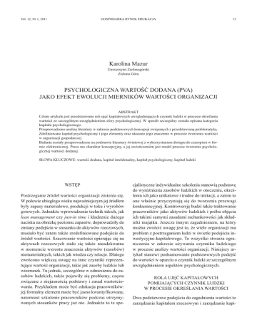 Karolina Mazur PSYCHOLOGICZNA WARTOŚĆ DODANA (PVA