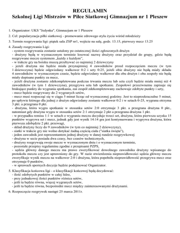 REGULAMIN Szkolnej Ligi Mistrzów w Piłce Siatkowej Gimnazjum