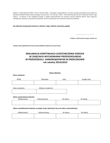 DEKLARACJA KONTYNUACJI UCZESTNICZENIA DZIECKA W