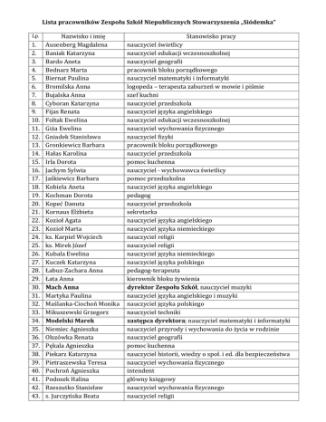 Lista pracowników Zespołu Szkół Niepublicznych Stowarzyszenia