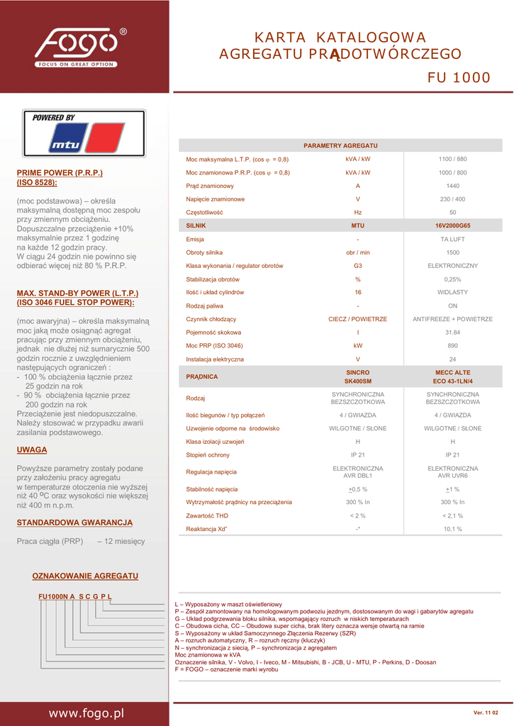Karta katalogowa FU1000