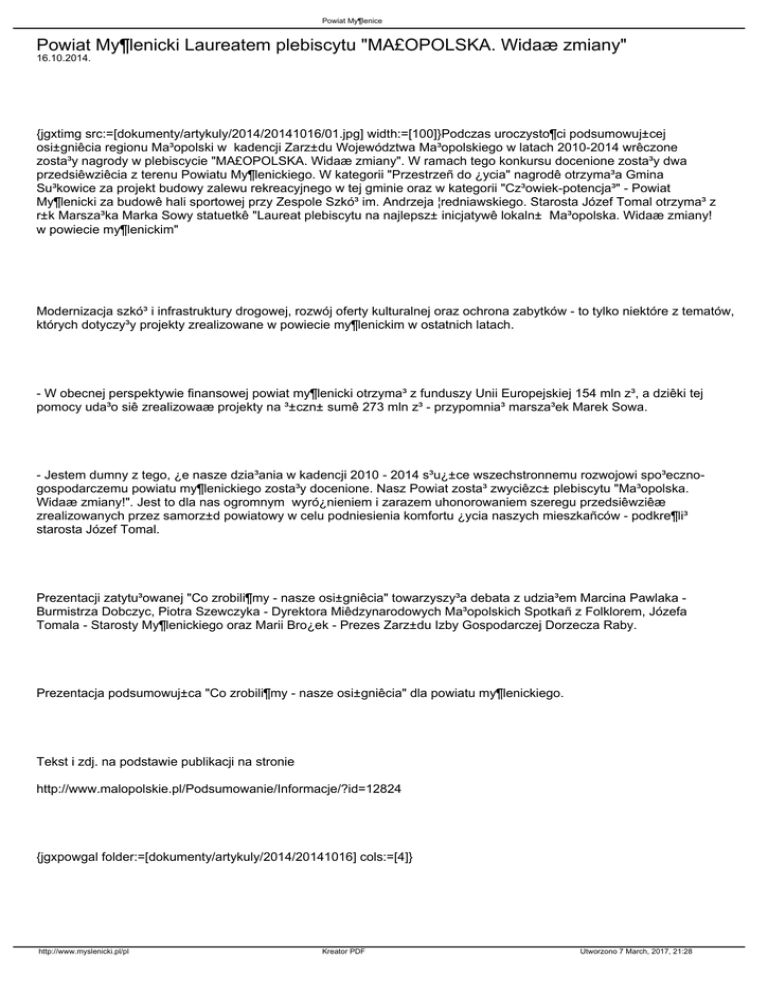 MA£OPOLSKA. Widać zmiany
