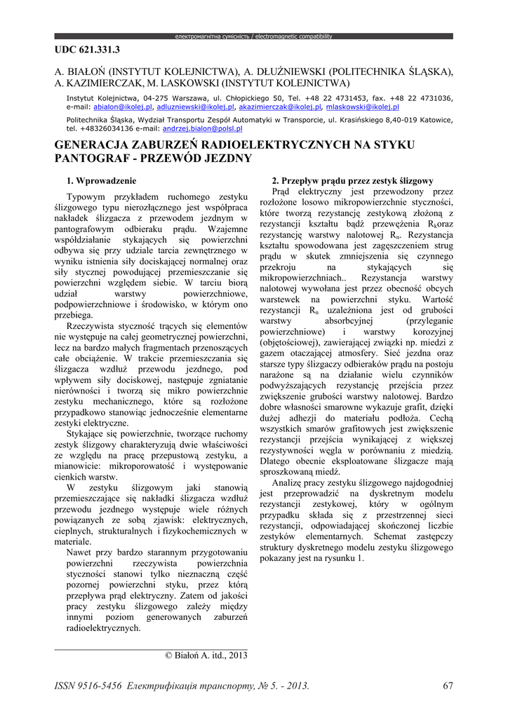 generacja zaburzeń radioelektrycznych na styku pantograf
