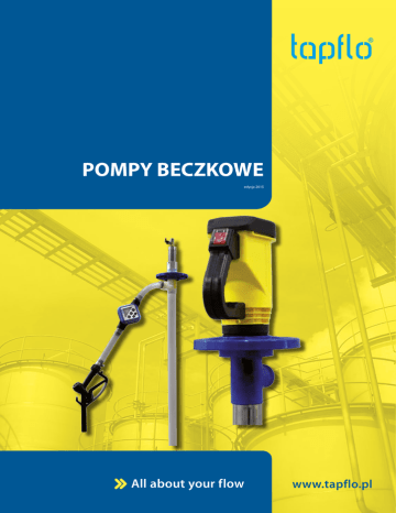 POMPY BECZKOWE edycja 2015 All about your flow www.tapflo.pl All about your flow Tapflo jest liderem w produkcji pomp z ofertą szerokiej gamy produktów klasy premium do różnych aplikacji przemysłowych. Skupiamy się na dostarczaniu najlepszych rozwiązań do transferu cieczy i wsparciu na wszystkich etapach procesu. Est. in Sweden 1980 O Tapflo Tapflo, będąc niezależną firmą rodzinną, jest jednocześnie największym europejskim producentem i globalnym dostawcą zasilanych sprężonym powietrzem pomp membranowych, pomp odśrodkowych i innych urządzeń przemysłowych. Firma powstała w Kungälv, w Szwecji w 1980r, i od momentu powstania skupia się na konstrukcji i produkcji pomp membranowych tworzywowych, metalowych i sanitarnych jak również całej gamy pomp odśrodkowych i urządzeń przemysłowych. Lata dynamicznego rozwoju doprowadzały do powstania Grupy Tapflo o zasięgu globalnym. Grupa Tapflo jest reprezentowana poprzez własne oddziały oraz przez niezależnych dystrybutorów w ponad 60 krajach na 6 kontynentach dlatego produkty i części zamienne są dostępne na całym świecie. Potwierdzona jakość W Tapflo wierzymy, że jakość jest jedną z najważniejszych wartości, zarówno dla naszych klientów jak i pracowników. Efektem takiego podejścia jest fakt, że produkty Tapflo są zgodne z wieloma światowymi certyfikatami i instrukcjami jakości. Wiele z naszych produktów spełnia wymagania dyrektywy EC ATEX dla urządzeń do zastosowania w potencjalnie niebezpiecznym środowisku. Aseptyczna seria jest certyfikowana na zgodność z EHEDG (European Hygienic Engineering & Design Group) natomiast farmaceutyczna seria ma aprobatę USP VI oraz EC 1935/2004. Wszystkie produkty posiadają oznaczenie CE i do każdego produktu dołączana jest instrukcja obsługi. Proces produkcji Tapflo jest certyfikowany zgodnie z ISO 9001:2009. REACH Compliant ROHS Compliant Nasze wartości Długookresowe zaangażowanie jest kluczem Dopasowanie produktu do potrzeb Naszym celem jest ciągłe dostarczanie produktów premium dostosowanych do ewoluujących potrzeb naszych klientów. Relację z naszym Klientem traktujemy jako inwestycję długookresową. Naszym nadrzędnym celem jest pomagać Klientom w znalezieniu najlepszego rozwiązania, które podniesie efektywność ich biznesu. Jeżeli to wymaga przeprojektowania standardowych rozwiązań, stanowi to dla nas wyzwanie nie problem. Lokalnie oznacza na twoich warunkach Tapflo jest globalnym dostawcą zapewniającym lokalne wsparcie. Niezależnie do tego gdzie znajduje się Twój biznes możesz liczyć na nasze wsparcie. Elastyczność jest podstawą dobrej obsługi Jesteśmy przygotowani aby stawić czoła rzeczywistości, wiedząc że w praktyce oznacza to odpowiedzi na zapytania, ofertowanie rozwiązań i dostarczanie części zamiennych w minimalnym czasie. 2 Produkcja to rozwój W takcie procesu wytwarzania produktów, praktycznie niemożliwym jest aby nie odkryć możliwości jego udoskonalenia. Pozwala to nam na oferowanie rozwiązań które są nawet bardziej dopasowane i efektywniejsze. Pompy beczkowe Pompy beczkowe to pompy do rozładunku cieczy ze znormalizowanych pojemników takich jak beczki oraz inne zbiorniki, których głębokość nie przekracza 1,8 m. Doskonale sprawdzają się przy przetłaczaniu zarówno mediów spożywczych jak i przemysłowych. Pompy beczkowe są lekkimi i wygodnymi urządzeniami o bardzo szerokim zakresie zastosowań, niemal do wszystkich rodzajów cieczy. Mogą pompować media zarówno o stosunkowo wysokiej jak i niskiej lepkości, przy równoczesnym występowaniu agresywności chemicznej pompowanego medium. Zasadniczą zaletą tej serii pomp jest możliwość montowania poszczególnych rur z dowolnym silnikiem z dostępnej oferty. Główne zalety dostępny w Szerokie spektrum zastosowań Wygoda użytkowania Małe gabaryty i zwarta budowa Możliwość zastosowania dodatkowych akcesoriów Modułowe wykonanie Różnorodność wykonań konstrukcyjnych i materiałowych Wykonania specjalne Pompowanie wysoko i nisko lepkich mediów (do 100 000 cP) Niskie LCC (Life cycle cost) Dostępne modele w wykonaniu z materiałów o wysokiej odporności chemicznej Dostępne wykonania materiałowe dopuszczone do kontaktu z mediami spożywczymi Zasada działania Zasada działania pompy beczkowej jest bardzo prosta, co gwarantuje jej niezawodną eksploatację. Pompy beczkowe składają się z dwóch głównych elementów: rury pompującej oraz silnika. Elementem wymuszającym przepływ wewnątrz rury jest wirnik, bądź śruba zainstalowana na jej końcu. Ten obrotowy element pompy sprzężony jest za pomocą wału poprowadzonego na całej długości rury oraz sprzęgiełka w kołnierzu pompy z silnikiem. 3 Szeroki zakres aplikowalności Pompy beczkowe znajdują zastosowanie dla szerokiego spektrum mediów takich jak: kwas solny, ług sodowy, kwas siarkowy, kwas mrówkowy, chlorek amonu, wywoływacz fotograficzny, kąpiele utrwalające, kwas octowy, kwas fosforowy, kwas owocowy, kwas azotowy, kwas fluorowodorowy, woda, kwas borowy, kwas chromowy, roztwór mydła, roztwory wybielaczy, kwas mlekowy, węglan potasu, woda pitna, dodatki do pasz, syropy, konserwanty spożywcze, miód, syropy, dżemy, ketchup. Rury pompujące Do każdego z silników dostępne są cztery wykonania rur pompujących: PP, PVDF, stal nierdzewna 316L i aluminium. Dobór ich uzależniony jest głównie od medium, które będzie tłoczone przy pomocy pompy beczkowej. Poszczególne rury mocowane są do silnika w bardzo prosty sposób. Wymiana silników pomiędzy rurami odbywa się bez narzędzi, wystarczy ręcznie odkręcić „flanszę mocującą”. PP 4 PV DF SS 3 L 16 UM U AL NI MI Różnorodne wirniki Pompy wyposażone w rotor dają wysokie wydajności i niskie podnoszenie, natomiast pompy z wirnikiem zapewniają wyższe podnoszenie przy niższych wydajnościach. Wirnik osiowy (rotor) Wirnik promieniowy Standardowo montowane we wszystkich me