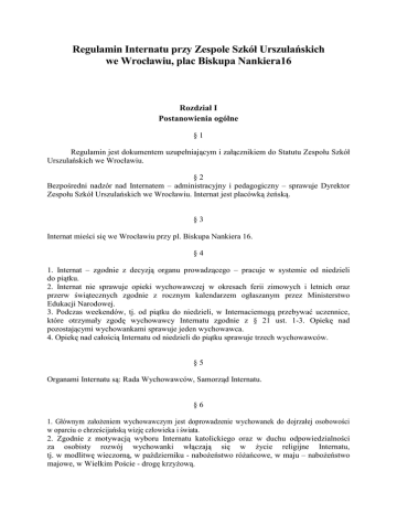 Regulamin Internatu - Zespół Szkół Urszulańskich we Wrocławiu