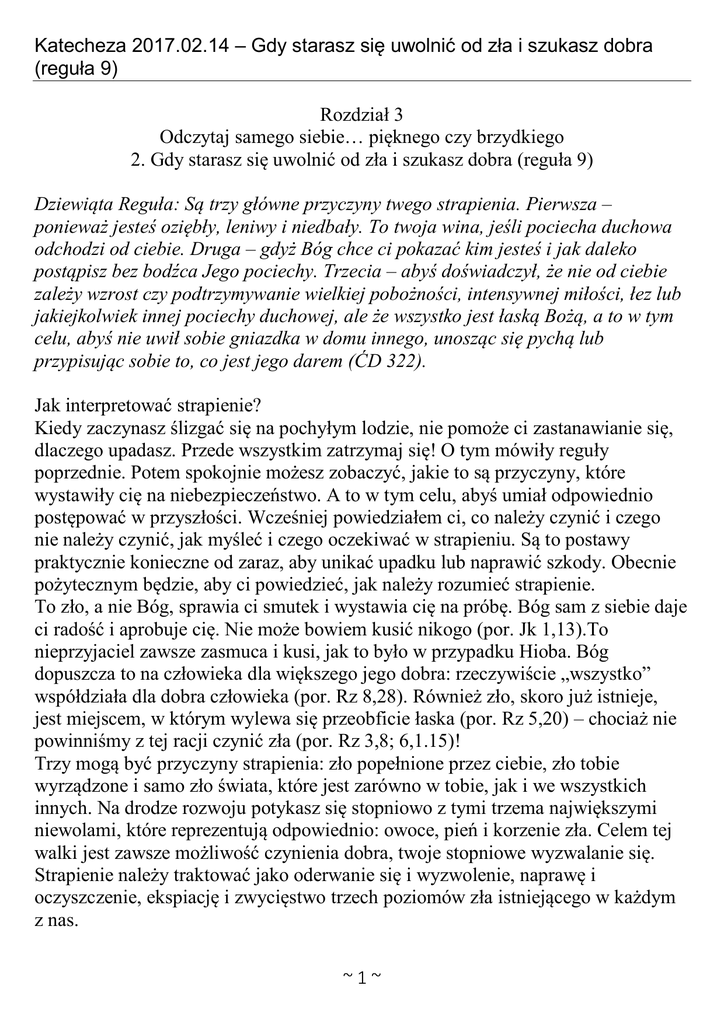 ~ 1 ~ Katecheza 2017.02.14 – Gdy starasz się uwolnić od zła i