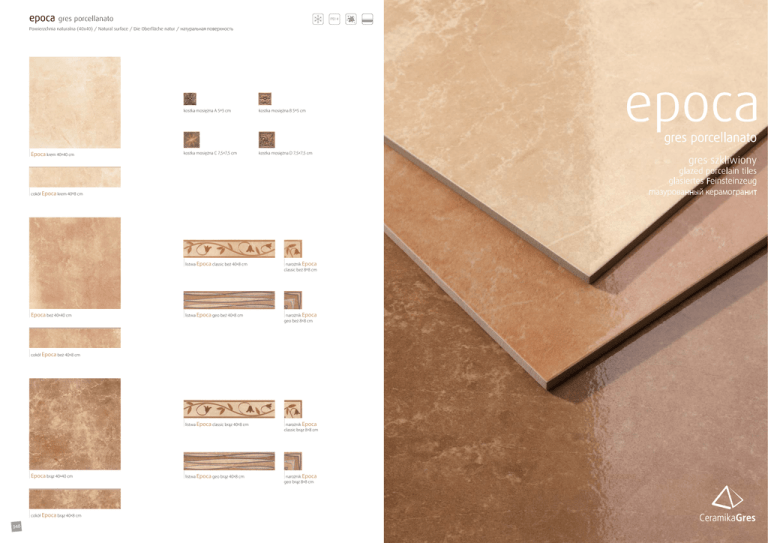 epoca gres porcellanato PEI 4 Powierzchnia naturalna (40x40) / Natural surface / Die Oberfläche natur / натуральная поверхность kostka mosiężna A 5x5 cm kostka mosiężna B 5x5 cm epoca gres porcellanato | Epoca krem 40x40 cm kostka mosiężna C 7,5x7,5 cm kostka mosiężna D 7,5x7,5 cm gres szkliwiony glazed porcelain tiles glasiertes Feinsteinzeug глазурованный керамогранит | cokół Epoca krem 40x8 cm | Epoca beż 40x40 cm | listwa Epoca classic beż 40x8 cm | narożnik Epoca | listwa Epoca geo beż 40x8 cm | narożnik Epoca | listwa Epoca classic brąz 40x8 cm | narożnik Epoca | listwa Epoca geo brąz 40x8 cm | narożnik Epoca classic beż 8x8 cm geo beż 8x8 cm | cokół Epoca beż 40x8 cm | Epoca brąz 40x40 cm | cokół Epoca brąz 40x8 cm 348 classic brąz 8x8 cm geo brąz 8x8 cm