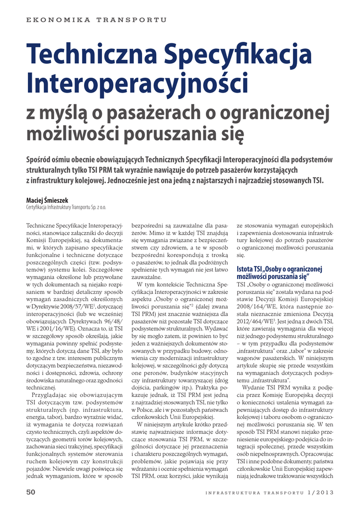 TSI z myślą o PRM - Certyfikacja Infrastruktury Transportu Sp. z oo