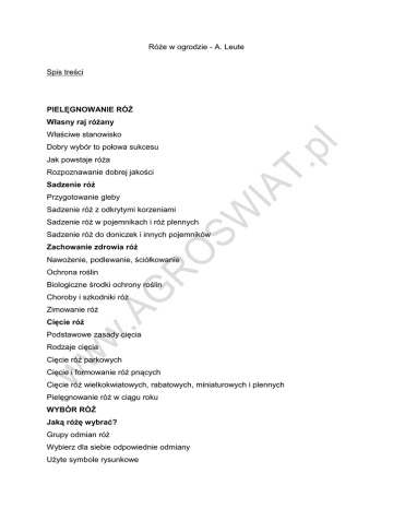 Róże w ogrodzie - A. Leute Spis treści PIELĘGNOWANIE RÓŻ