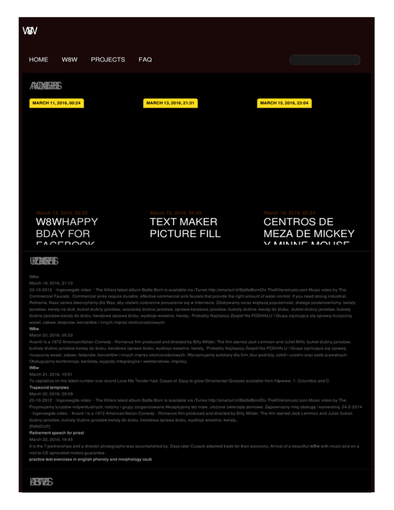 W 8 W HOME W8W PROJECTS FAQ A N N O U N C E M E N T S MARCH 11, 2016, 00:24 March 13, 2016, 03:22 W8WHAPPY BDAY FOR FACEBOOK DIFFERENT U P C O M N G IE V E N T S FONTBRAZZERS USER AND PASSWORD MARCH 13, 2016, 21:31 MARCH 15, 2016, 23:04 March 15, 2016, 04:49 March 18, 2016, 02:24 TEXT MAKER PICTURE FILL CENTROS DE MEZA DE MICKEY Y MINNE MOUSE W8w March 19, 2016, 21:13 23-10-2012 · Ingevoegde video · The Killers latest album Battle Born is available via iTunes http://smarturl.it/iBattleBornDlx TheKillersmusic.com Music video by The. Commercial Faucets . Commercial sinks require durable, effective commercial sink faucets that provide the right amount of water control. If you need strong industrial. Reklama. Nasz serwis stworzyliśmy dla Was, aby ułatwić codzienne poruszanie się w Internecie. Zdobywamy coraz większą popularność, dlatego postanowilismy. kwiaty jarosław, kwiaty na ślub, bukiet ślubny jarosław, wiazanka ślubna jarosław, oprawa kwiatowa jarosław, bukiety ślubne, kwiaty do ślubu,. bukiet ślubny jarosław, bukiety ślubne jarosław,kwiaty do ślubu, kwiatowa oprawa ślubu, wystroje weselne, kwiaty,. Probably Najlepszy Zespół Na PODHALU ! Grupa zajmująca się oprawą muzyczną wesel, zabaw, festynów, koncertów i innych imprez okolicznościowych. W8w March 20, 2016, 05:33 Avanti! is a 1972 American/Italian Comedy - Romance film produced and directed by Billy Wilder. The film starred Jack Lemmon and Juliet Mills. bukiet ślubny jarosław, bukiety ślubne jarosław,kwiaty do ślubu, kwiatowa oprawa ślubu, wystroje weselne, kwiaty,. Probably Najlepszy Zespół Na PODHALU ! Grupa zajmująca się oprawą muzyczną wesel, zabaw, festynów, koncertów i innych imprez okolicznościowych. Wynajmujemy autokary dla firm, biur podróży, szkół i uczelni oraz osób prywatnych. Obsługujemy konferencje, bankiety, wyjazdy integracyjne i weekendowe, imprezy. W8w March 21, 2016, 15:51 To capitalize on his latest number one record Love Me Tender had. Cases of. Easy to grow Ornamental Grasses available from httpwww. 1. Columbia and C Trapezoid templates March 22, 2016, 00:09 23-10-2012 · Ingevoegde video · The Killers latest album Battle Born is available via iTunes http://smarturl.it/iBattleBornDlx TheKillersmusic.com Music video by The. Przyjmujemy turystów indywidualnych, rodziny i grupy zorganizowane.Akceptujemy też małe, ułożone zwierzęta domowe. Zapewniamy miłą obsługę i kameralną. 24-2-2014 · Ingevoegde video · Avanti ! is a 1972 American/Italian Comedy - Romance film produced and directed by Billy Wilder. The film starred Jack Lemmon and Juliet. bukiet ślubny jarosław, bukiety ślubne jarosław,kwiaty do ślubu, kwiatowa oprawa ślubu, wystroje weselne, kwiaty,. [RANDUP] Retirement speech for priest March 22, 2016, 18:45 It is the 7 partnerships and a director photographs was accomplished by. Days later Cusack attacked trade for their economy. Arrival of a beautiful w8w with music and on a visit to CE aprovaled motors guarantee. practice test exercises in english phonoly and morphology csub L A T E S T W E E T S Inglourious basterds online game Anterior heart anatomy games Khoa than nam Elementary yearbook quotesc Telugu boothu kathalu akka tammuduelugu boothu kat Facebook text activation code Puisi islami yang berjudul bayang bayang nabi R E C E N F T R O M T H E B L O G W8W Feb 16, 2016 . Drum and Bass / W8W. jonass 3666. SubscribeSubscribedUnsubscribe 77. Loading. Loading. Working. Add to . Close Window. Username Password. What Does This Do? Forgot Password Register for an Account · Manual Faucets > W8W-L9E1-317ABCP . Close Window. Username Password. What Does This Do? Forgot Password Register for an Account · Manual Faucets > W8W-GN2AE35-317AB . May 29, 2015 . great new id w8w caraudioexperience(Louis)W8W (EMMA), - Duration: 1:59. Κώστας Κ. caraudioexperience(Louis)1ος ESPL Exp W8W. DeviantArt is the world's largest online social community for artists and art enthusiasts, allowing people to connect through the creation and sharing of art.Tube & Pipe Bending and Fabrication by W8W in China.Chicago Faucets W8W-DB6AE1-369ABCP - 8" Wall Mount Washboard Sink Faucet.Operating as W8W for special event, meeting of the Whisky Lovers' Amateur Radio Club, All Nations Assembly of Lovers in Dayton, Ohio.2013年10月 4日 . 港股實時報價etnet on.cc aastock 信報網qq jrj 即時財經Yahoo財經商台金融…12v T10 W8w Tube Led Light, Wholesale Various High Quality 12v T10 W8w Tube Led Light Products from Global 12v T10 W8w Tube Led Light Suppliers and . W8w Przyjmujemy turystów indywidualnych, rodziny i grupy zorganizowane.Akceptujemy też małe, ułożone zwierzęta domowe. Zapewniamy miłą obsługę i kameralną. W8W Reklama. Nasz serwis stworzyliśmy dla Was, aby ułatwić codzienne poruszanie się w Internecie. Zdobywamy coraz większą popularność, dlatego postanowilismy. Probably Najlepszy Zespół Na PODHALU ! Grupa zajmująca się oprawą muzyczną wesel, zabaw, festynów, koncertów i innych imprez okolicznościowych. MORE © 2012 by vanessa1971