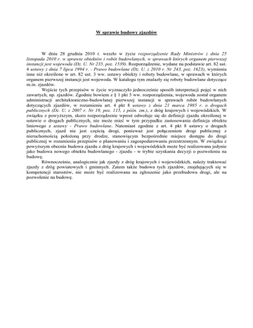 W sprawie budowy zjazdów W dniu 28 grudnia 2010 r. weszło w