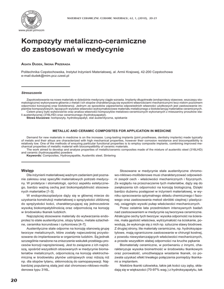 Kompozyty metaliczno-ceramiczne do zastosowa w medycynie