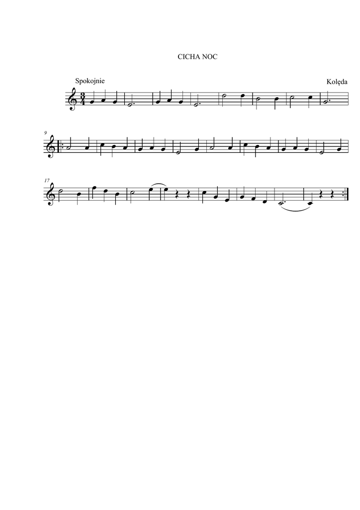 CICHA NOC Spokojnie 3 & 4 œ œ œ ˙. & .. ˙ 9 &˙ 17 œ œ œ ˙. œ œ œ œ œ œ œ ˙ œ œ œ œ ˙ œ ˙ ˙ œ ˙ œ ˙ Kolęda œ ˙. œ œ œ œ œ œ œ ˙ œ œ Œ Œ œ œ œ œ œ œ . ˙ œ œ Œ Œ ..