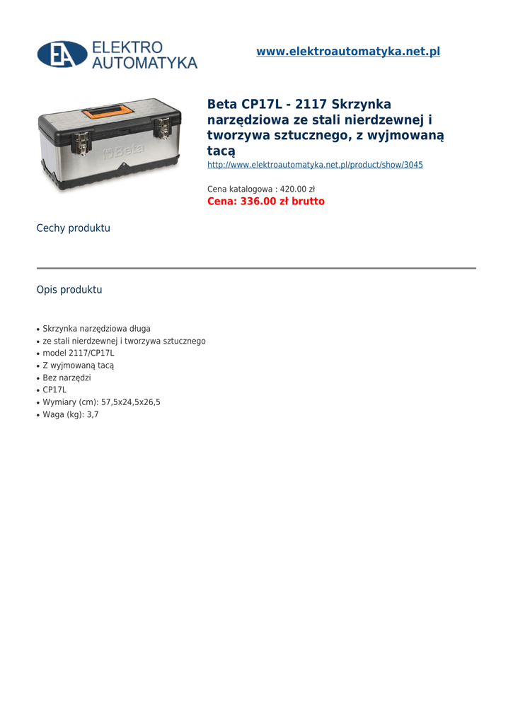 Beta CP17L - 2117 Skrzynka narzędziowa ze stali nierdzewnej i
