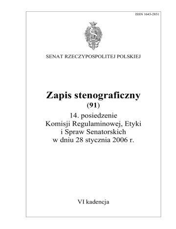 ISSN 1643-2851 SENAT RZECZYPOSPOLITEJ POLSKIEJ Zapis stenograficzny (91) 14. posiedzenie Komisji Regulaminowej, Etyki i Spraw Senatorskich w dniu 28 stycznia 2006 r. VI kadencja Porządek obrad: 1. Rozpatrzenie ustawy budżetowej na rok 2006 w częściach właściwych przedmiotowemu zakresowi działania komisji: Krajowe Biuro Wyborcze; Kancelaria Prezydenta RP; Kancelaria Sejmu; Kancelaria Prezesa Rady Ministrów; Kancelaria Senatu (druk nr 53). Zapis stenograficzny jest tekstem nieautoryzowanym. (Początek posiedzenia o godzinie 10 minut 59) (Posiedzeniu przewodniczą: przewodniczący Piotr Andrzejewski i zastępca przewodniczącego Piotr Zientarski) Przewodniczący Piotr Andrzejewski: Otwieram posiedzenie Komisji Regulaminowej, Etyki i Spraw Senatorskich. Na dzisiejszym posiedzeniu mamy ustosunkować się i sformułować stanowisko komisji w przedmiocie rozpatrzenia ustawy budżetowej na rok 2006 w następujących działach: Krajowe Biuro Wyborcze, Kancelaria Prezydenta, Kancelaria Sejmu, Kancelaria Prezesa Rady Ministrów i Kancelaria Senatu. Witam państwa i witam pana ministra jako przedstawiciela Krajowego Biura Wyborczego. (Oklaski) Koreferentem przedstawienia przez pana ministra tej części budżetu, w wersji, która dotarła do nas z Sejmu, będzie pan senator profesor Górecki. Bardzo proszę, Panie Ministrze, o przedstawienie tej części i swoich wniosków. Kierownik Krajowego Biura Wyborczego Kazimierz Czaplicki: Dziękuję bardzo. Panie Przewodniczący! Wysoka Komisjo! Budżet Krajowego Biura Wyborczego na rok 2006, w części 11, został opracowany jak niemalże wszystkie budżety na podstawie wskaźników makroekonomicznych przyjętych przez Radę Ministrów. Po wniesionej w listopadzie bieżącego roku w części podstawowej, czyli części 11, autopoprawce wydatki Krajowego Biura Wyborczego zostały zaplanowane w rozdziale „Urzędy naczelnych organów władzy państwowej, kontroli i ochrony prawa” w wysokości 37 milionów 195 tysięcy zł, to jest 103,4% planu roku 2005. Wydatki te zostały przyjęte w ustawie budżetowej na rok bieżący przez Sejm, ustawie uchwalonej kilka dni temu. W poszczególnych grupach wydatków ten ogólny plan wydatkowania środków z budżetu państwa przez Krajowe Biuro przedstawia się następująco. Po pierwsze, dotacje celowe dla gmin na zadania zlecone w kwocie 6 milionów 150 tysięcy zł. Są to środki, z których gmina prowadzi na bieżąco stały rejestr wyborców jako zadania zlecone ustawą − Ordynacja wyborcza do Sejmu i do Senatu, prowadzi również odrębną część dla obywateli państw Unii Europejskiej niebędących obywatelami polskimi, którzy zgłaszają wnioski w sprawie uczestnictwa w wyborach − oczywiście to było w wyborach do Parlamentu Euro- 14. posiedzenie Komisji Regulaminowej, Etyki i Spraw Senatorskich pejskiego − i ewentualnie w wyborach samorządowych, które będą w tym roku przeprowadzane. Jak mówiłem, są to wydatki zlecone gminie na podstawie ustawy. Praktycznie obejmują one środki na prowadzenie tego rejestru, na obsługę wymiany informacji między gminami, a także sporządzenie danych elektronicznych i przekazanie ich do delegatur Krajowego Biura Wyborczego, a następnie do Państwowej Komisji Wyborczej. Najpoważniejszą częścią z tej grupy wydatków podstawowego rozdziału są wydatki bieżące – 30 milionów 726 tysięcy zł. Z tym, że generalnie można powiedzieć, że one wprawdzie wzrosły w stosunku do 2005 r. o 6,2%, ale trzeba by też zauważyć, że w tej grupie wydatków wydatki Krajowego Biura w wyniku prac sejmowych zostały obniżone o ponad 30%, w planie na 2005 r. i w przyjętej ustawie na ten rok. To są wydatki mające przede wszystkim charakter wydatków stałych, a więc związanych z utrzymaniem lokali, czterdziestu dziewięciu delegatur Krajowego Biura Wyborczego w terenie i siedziby Państwowej Komisji Wyborczej, która mieści się w budynku Kancelarii Prezydenta Rzeczypospolitej Polskiej i za zajmowaną powierzchnię oraz energię i inne stałe opłaty, związane z utrzymaniem budynku, ponoszone są z tego tytułu koszty. Ponadto są to niezbędne usługi telefoniczne, pocztowe i internetowe w związku z siecią internetową jaką Krajowe Biuro Wyborcze posiada − łączność internetowa z gminami oraz z delegaturami, która służy w okresie wyborów do przekazywania informacji o wynikach głosowania i wynikach wyboru − a także wynagrodzenia i pochodne od wynagrodzeń dla pracowników oraz członków Państwowej Komisji Wyborczej i komisarzy wyborczych. Jeśli chodzi o ten ostatni element, to zatrudnienie w Krajowym Biurze Wyborczym planowane jest w liczbie trzystu trzydziestu sześciu etatów, w tym jeden etat, tak zwana erka, czyli kierownik Krajowego Biura Wyborczego, oraz dodatkowo w porównaniu do 2005 r. jeden etat na administratora systemu Platforma Wyborcza. Od 2004 r. Państwowa Komisja Wyborcza przyjęła założenia systemu Platformy Wyborczej, to znaczy opracowania takiej obsługi informatycznej wyborów, która by służyła stale wszystkim przeprowadzanym wyborom, a w gruncie rzeczy głosowaniom powszechnym w Polsce. A więc jest to obsługa poprzez moduły specjalne wyborów do Sejmu, do Senatu, w tym łącznie z ewentualnie wyborami uzupełniającymi… Przewodniczący Piotr Andrzejewski: Przepraszam, Panie Ministrze. Czy mógłby ktoś poprosić, żeby ściszono tam telewizor? Bo to jednak przeszkadza. Może da się tam zawiesić w przyszłości ścianę z jakimś ekranem? To jednak troszkę przeszkadza. Jeszcze raz przepraszam, Panie Ministrze. Kierownik Krajowego Biura Wyborczego Kazimierz Czaplicki: Następnie obsługa informatyczna wyborów prezydenta, wyborów do Parlamentu Europejskiego. W końcowej fazie znajdują się obecnie, zostaną zamknięte w pierwszym kwartale, prace nad modułem obsługi informatycznej najbardziej skomplikowanych wybo2 91/VI w dniu 28 stycznia 2006 r. rów − wyborów samorządowych. Chodzi więc 