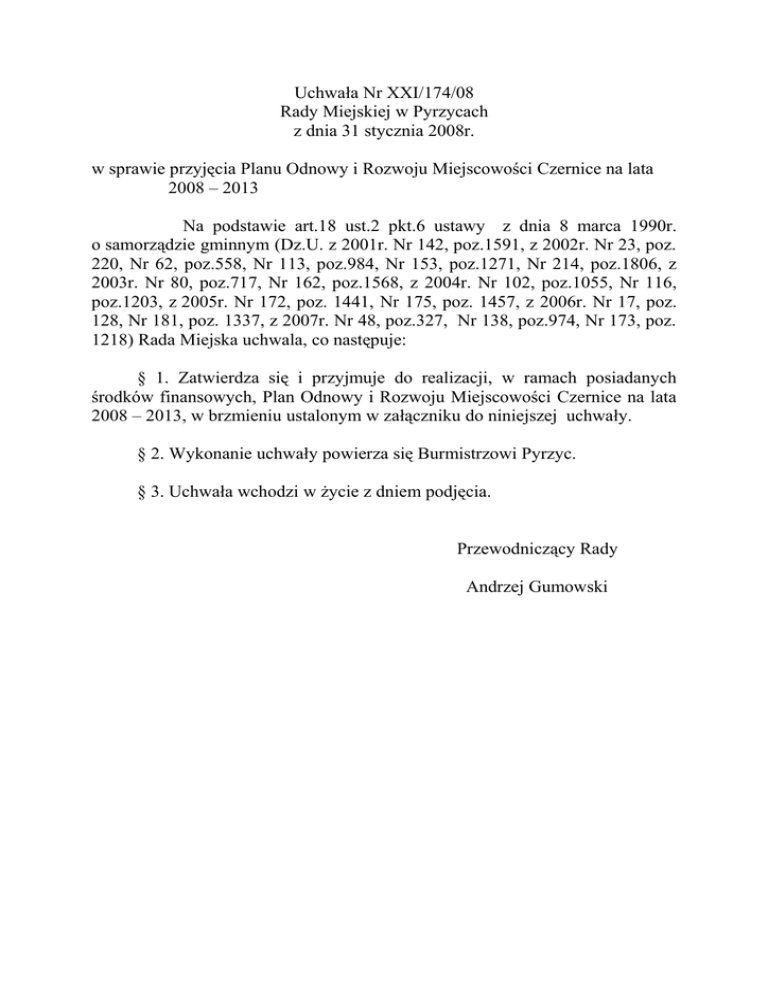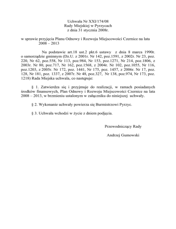 Uchwała Nr XXI/174/08 Rady Miejskiej w
