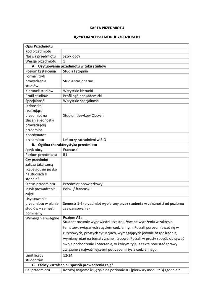 KARTA PRZEDMIOTU francuski M7