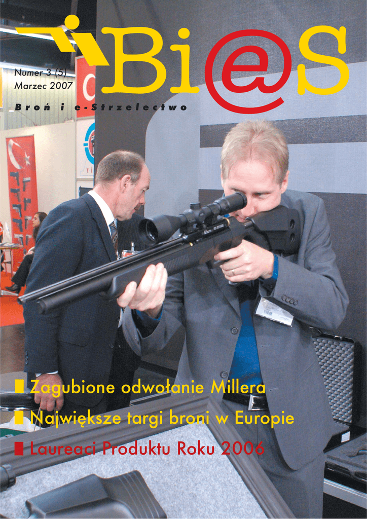 Numer 3 (5) Marzec 2007 Br oń i Bi S e-S tr zelectwo Zagubione odwołanie Millera Największe targi broni w Europie Laureaci Produktu Roku 2006 364 słowa od Killera... Tym razem w numerze P obyt na norymberskiej IWA Messe działa na odbiorcę jak wszystkie olbrzymie wystawy świata. Oszałamia feerią barw, świateł zapachów i doznań powodując początkowo nerwicę związaną z zachłannością (chciałoby się wszystko widzieć i wszystko mieć) a na zakończenie wrażenie niedosytu połączonego z bólem nóg. Niedosyt zresztą też związany jest z zachłannością – jest to stały strach, że przeoczyło się coś ważnego lub ciekawego. Taka impreza odciska na uczestniku jeszcze inne piętno – człowiek jest pod wrażeniem wielkości i sprawności organizacji. Wszystko tu jest dopięte na ostani guzik – materiały dla dziennikarzy są na czas i w odpowiedniej ilości, drogi i ścieżki odpowiednio oznakowane, to co zaplanowano odbywa się tam i o tej porze gdzie zapowiedziano, nie ma problemów z czymkolwiek. Wszystko umieszczono w grafiku, przewidziano i wykonano, a całość funkcjonuje niczym szwajcarski zegarek. Jednym słowem Europa. Ta sama Europa do której zawsze podobno przynależeliśmy, ale od której jakoś zawsze odstawaliśmy. I nagle ją – tzn. Europę – mamy w domu. Dostarczoną pocztą kurierską w eleganckim opakowaniu, leży na dywanie w paradnej izbie, a my patrzymy, na nią jak na paczkę spod Bożenarodzeniowej choinki. I nie bardzo wiemy co z nią – tzn. Europą – zrobić. Porównanie IWA z naszym rodzimym Hubertusem wypada mocno stresująco. Hubertus miał pecha – wystartował w formule adresowanej do wąskiego i dość elitarnego kręgu odbiorców, i dopiero po rocznej przerwie ma trochę zmienić swój charakter idąc w kierunku „outdooru” jak IWA. Z tym, że w Norymberdze jest to przejaw nacisku na „political correctness”, a u nas obawa, że ta cenna impreza przestanie się odbywać z braku zainteresowania ze strony zarówno wystawców jak i odwiedzających. I nic dziwnego, Europa jest tuż za miedzą, paczka została otwarta, więc równie dobrze co do Warszawy można wybrać się do Norymbergi. To samo zresztą dzieje się w handlu – nie ma już przymusu kupowania w polskich firmach stale odpowiadających, że nie mają towaru o który pytamy, lub co gorsza odpowiadających, że go nam nie sprzedadzą. Strzelcy czarnoprochowi od dawna dokonują zakupu za granicami kraju, a „wiatrówkowcy” też wydeptali podobne ścieżki. Dla firm i organizatorów zaś, jest to ostatni dzwonek, ostatnia szansa, na rozpoczęcie działań na serio. Bo pewnego dnia może się okazać, że tłum kłębiący się dotąd za ladą zniknął. Gdzie? Tak jakoś w Europie... Zagubione odwołanie Millera str. 5 IWA 2007 str. 9 Własna strzelnica str. 17 Laureaci Produktu roku 2006 str. 21 Wiatrówka inna niż wszystkie str. 23 Finansowe cesarskie cięcie str. 27 Ładuj! Cel! Pal! str. 31 „Taktyka” na pokaz str. 35 Pogwarki pana Jana str. 42 Bi S Broń i e-Strzelectwo fax 022 76-76-138 [email protected] Redaguje zespół Redaktor naczelny: Radosław Baturo [email protected] 0-691-220-355 Sekretarz redakcji: Miłosław Majstruk [email protected] 0-502 675-240 Zespół: Marcin Abratowski, Jacek Bonecki (foto), Radosław Cholewiński, Tomasz Gębala, Jan Kraśko, Piotr Kuczyński, Dorota Majcher, Stefan Nyka (foto), Marcin Pałucha, Piotr Szamowski, Tomasz Wełnicki, Hubert Zegarski, Adrian Zoruk http://bies.airguns.pl Wydawca: CEKAUS – Izabela Majstruk ul. Leśna 21A/20, 05-110 Jabłonna Wszelkie prawa zastrzeżone. Przedruk, kopiowanie, rozpowszechnianie materiałów w jakiejkolwiek formie – w całości lub fragmentach – tylko za pisemna zgodą redakcji. Wydawnictwo bezpłatne. Wszelkie formy czerpania korzyści ze sprzedaży są niezgodne z prawem i będą ścigane. Na okładce: Fredrick Akselsson właściciel firmy FX Radosław „Killer” Baturo Broń i e-Strzelectwo 2 Fikcje i fakty n Nowości Gamo Gamo zaprezentowało nowe modele wiatrówek. Viper Desert to Viper w osadzie w kolorze pustynnym, Shadow CSI to nic innego jak Shadow wyposażony w tłumik, na którym zamocowano muszkę, co umożliwia strzelanie z przyrządów Dostępny jest w trzech kalibrach: 4.5, 5.5 i 6.35 mm. Co ciekawe, występuje tylko w wersji z osadą orzechową, oczywiście wyposażoną w stopkę „TRIOPAD” (czyli z podkładkami dystansowymi, znaną z modelu 125). Poza wersją bazową fabryka wypuściła dwa dodatkowe modele Hatsan 135SP z kompensatorem i celownikiem Optima 3-9x32 oraz Hatsan 135XRD z aluminiowym tłumikiem i kolimatorem Optima 1x40. n Karabinek Blow otwartych. Z kolei CFX Royal jest modelem CFX w osadzie bukowej. Najciekawszą pozycją jest Gamo Viper Express wiatrówka na naboje śrutowe w myśliwskim kalibrze 25. Naboje są specjalnymi plastikowymi rurkami, w które wsypuje się okrągły śrut. W komplecie znajduje się wkładka umożliwiająca strzelanie zwykłym śrutem w kalibrze 5.5 mm. Nowości pojawiły się także wśród oferowanych śrutów. PBA Raptor jest śrutem ekologicznym, bez dodatku ołowiu. Z kolei Expander to śrut grzybkujący podobny w kształcie do Predatora. Nowością jest również Rocket będący niczym innym niż Hollow Pointem ze stalową kulką w zagłębieniu. Turecka firma Blow wypuszcza na rynek łamany karabinek sprężynowy. Karabinek ma występować w dwóch wersjach z osadą drewnianą i plastikową. Patrząc na jego wygląd można się spodziewać kolejnej kopii nieomalże kultowego Gamo Huntera. Na razie wiatrówka jest w fazie prototypu, ukończenie prac spodziewane jest za 3-4 miesiące. Dane techniczne: kaliber 4,5 mm, długość 1100 mm, długość lufy 450 mm, masa: 3,4 kg. n Kolejny Webley n Hammerli wchodzi w rynek amatorski Koncern Umarex, po przejęciu firmy Hammerli, znanej z wysokiej jakości broni wyczynowej, wprowadza na rynek pod tą marką wiatrówki popularne. Hammerli 850 AirMagnum ZG3