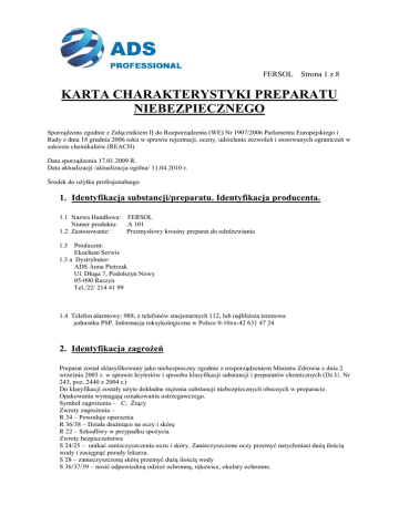 KARTA CHARAKTERYSTYKI PREPARATU NIEBEZPIECZNEGO