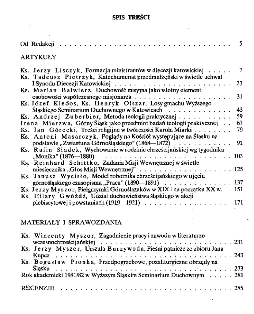 SPIS TREŚCI Od Redakcji . 5 ARTYKUŁY Ks. Jerzy Lisczyk