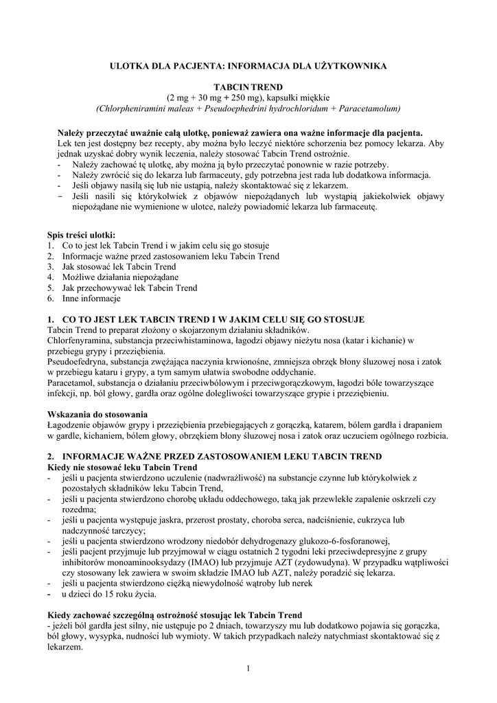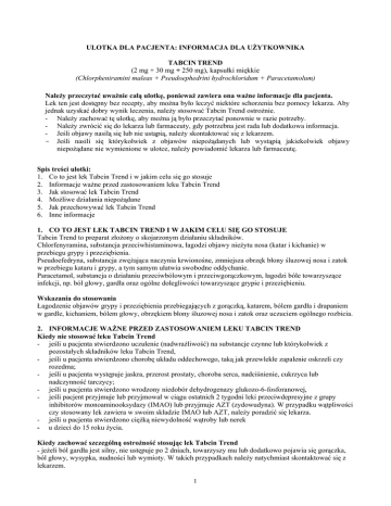 jednak uzyskać dobry wynik leczenia, należy stosować Tabcin Trend ostrożnie.