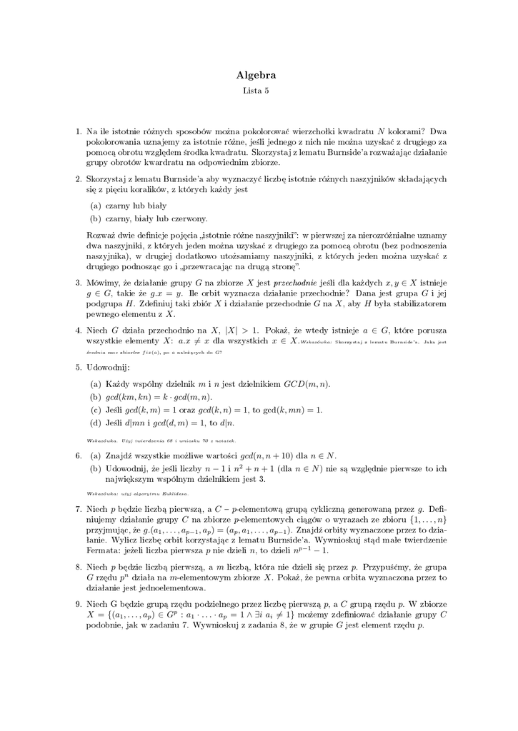 2. Skorzystaj z lematu Burnside'a aby wyznaczy¢ liczb¦ istotnie ró»nych naszyjników skªadaj¡cych