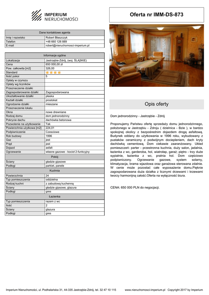 Oferta nr IMM-DS-873 - Imperium Nieruchomości