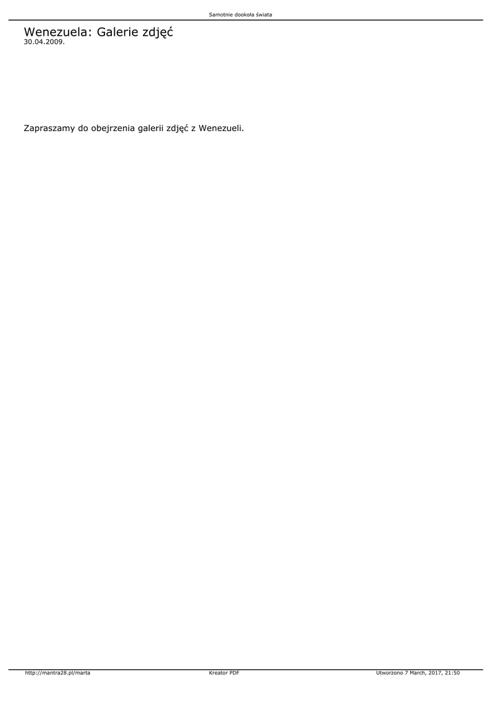 Samotnie dookoła świata Wenezuela: Galerie zdjęć 30.04.2009. Zapraszamy do obejrzenia galerii zdjęć z Wenezueli. http://mantra28.pl/marta Kreator PDF Utworzono 7 March, 2017, 21:50