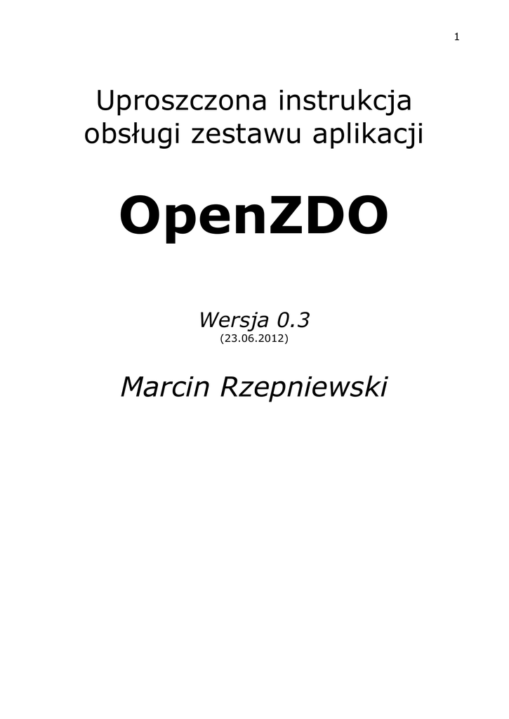 1 Uproszczona instrukcja obsługi zestawu aplikacji OpenZDO Wersja 0.3 (23.06.2012) Marcin Rzepniewski 2 Spis treści Spis treści Wstęp Co to jest OpenZDO? Trochę historii Możliwości aplikacji Wymagania techniczne Zasady udostępniania aplikacji Praca z programem Instalacja Uruchamianie programów Struktura foldera aplikacji Minimum koniecznych modyfikacji Praca z aplikacją “RTG” Praca z aplikacją “USG” Struktura wewnętrzna aplikacji UWAGA: W instrukcji będącej w przygotowaniu niektóre rozdziały mogą być puste lub potraktowane bardzo pobieżnie. 3 Wstęp Co to jest OpenZDO? ZDO, to skrót od „Zakład Diagnostyki Obrazowej”. Skrótu tego użyłem do nazwania zestawu aplikacji baz danych (opartego na MS Access) pełniących rolę prostego systemu RIS dla pracowni diagnostyki obrazowej. W praktyce są to proste programiki służące do wykonywania opisów badań RTG i USG, gromadzenia (archiwizacji) tych opisów, wyszukiwania ich oraz tworzenia prostych zestawień statystycznych dotyczących ilości wykonywanych badań. Dodany do nazwy przedrostek „Open” oznacza, że udostępniam te aplikacje na zasadzie „wolnego oprogramowania”, tj. każdy użytkownik może je modyfikować i dalej rozpowszechniać pod warunkiem nie zgłaszania do mnie żadnych pretensji, jeżeli coś przestanie działać. Oprogramowanie takie może być rozpowszechniane odpłatnie lub bezpłatnie. Ja przyjąłem zasadę bezpłatnego udostępniania programów w takiej wersji, w jakiej są, natomiast wszelka pomoc w instalacji (poza informacjami przekazanymi w tej instrukcji) lub dokonywaniu przeróbek może być realizowana odpłatnie. Więcej informacji w dalszej części instrukcji. Trochę historii Aplikacje ZDO powstały na potrzeby pracowni, w których byłem zatrudniony. Tworzone były w moim czasie wolnym, a testowane w pracy. Udostępnianie ich w moich miejscach pracy nigdy nie wiązało się z dodatkową gratyfikacją finansową. Natomiast kilka razy zdarzało mi się odpłatnie dostosowywać je i za opłatą instalować w różnych zaprzyjaźnionych pracowniach. Pierwsza aplikacja „PSS” (Poradnia Schorzeń Sutka) do wpisywania wyników mammografii, USG piersi i biopsji powstała w roku 1999 na podstawie zalążka bazy danych statystycznych stworzonego przez mojego Kolegę. Bazę Kolegi uzupełniłem o możliwość drukowania opisów (które dotąd pisano na maszynie) i definiowania szablonów opisów. W późniejszych latach bazę tą całkowicie przebudowałem tak, aby najpierw wybierać Pacjentkę, a potem dodawać jej badania. Na początku roku 2000 powstały aplikacje do opisów RTG, USG i TK, w których do końca zachował się system ułożenia badań w bazie w kolejności ich wykonania a nie wg Pacjentów. Dodano natomiast możliwości wyszukiwania poprzednich badań Pacjentów. W kolejnych latach powstał system udostępniania badań w postaci plików tekstowych na oddziały szpitalne. W ostatnich latach system ten zmodyfikowano, aby można było udostępniać wyniki na zasadzie WebSerwera lub zaczytywać do innych aplikacji. W moim podstawowym miejscu pracy aplikacje te funkcjonowały do 2006 roku podlegając ciągłym modernizacjom. W latach następnych w związku z ucyfrowieniem Zakładu i zakupem nowoczesnego tomografu komputerowego został zakupiony komercyjny system zintegrowany RIS i PACS. Od tego momentu rozwój moich programów uległ spowolnieniu. Program „PSS” przestał być używany w ogóle. Program „TK” pracował przez kilka lat w pewnej prywatnej pracowni (do czasu jej zamknięcia i przejęcia przez inną 4 firmę). Programy „RTG” i „USG” działają do chwili obecnej w jednym z moich miejsc pracy (do niedawna program „RTG” działał jeszcze w innym miejscu ale został tam zastąpiony komercyjnym produktem zapewniającym integrację różnych pracowni szpitala – wcześniej w każdej pracowni używano tam innego programu lub maszyny do pisania). Od czasu do czasu dochodzą do mnie zapytania o możliwości zainstalowania moich programów w różnych pracowniach. Niektórych pracowni nie stać na zakup drogiego oprogramowania komercyjnego. Jednak negocjacje często kończą się fiaskiem, gdyż pracownie te nie przewidują zwykle przeznaczenia kwoty większej niż 2 – 3 tys. złotych. A ja zobowiązując się do zainstalowania programu, dostosowania go do potrzeb użytkownika, przeszkolenia pracowników i objęcia pracowni opieką gwarancyjną musiałbym zrezygnować z części moich zajęć co wiązałoby się ze stratą, której taka kwota nie pokryje (nie mówiąc o tym, że na sprzedaży programu wypadałoby coś zyskać). Dlatego ostatecznie zdecydowałem się na udostępnienie wolnej wersji programów (na razie „RTG” i „USG”, choć nic nie stoi na przeszkodzie aby wykorzystać je np. do opisywania badań TK). Możliwości aplikacji Aplikacja „RTG” pozwala na wpisanie informacji o wykonanych zdjęciach (dane Pacjenta, dane ze skierowania, wykonane projekcje, wykorzystane błony filmowe), danych lekarza opisującego i dokonanie opisu (z możliwością wykorzystania definiowanych przez użytkownika szablonów opisów). Wykonany opis jest drukowany, zapamiętywany w bazie, a poza tym w postaci pliku zapisywany do wskazanego folderu (gdzie może być pobrany przez aplikację udostępniającą go dla lekarzy na oddziałach lub w poradniach). Po wprowadzeniu danych Pacjenta technik może wydrukować karteczkę do wykorzystania w naświetlarce. Za dowolny czas (w ramach bieżącego roku kalendarzowego) można wydrukować księgę pracowni oraz różne dodatkowe zestawienia. Ograniczenie do roku kalendarzowego wynika z przyjętego podziału na osobne pliki z danymi – standardowo 1 rok, z możliwością ich swobodnego przełączania w trakcie pracy. Można przyjąć oczywiście inny okres niż 1 rok, ale zbyt duże pliki danych spowalniają działanie aplikacji na starszych komputerach. Procedury wyszukujące badania Pacjent