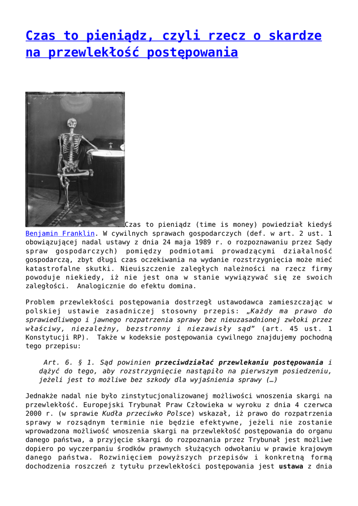 Czas to pieniądz, czyli rzecz o skardze na przewlekłość