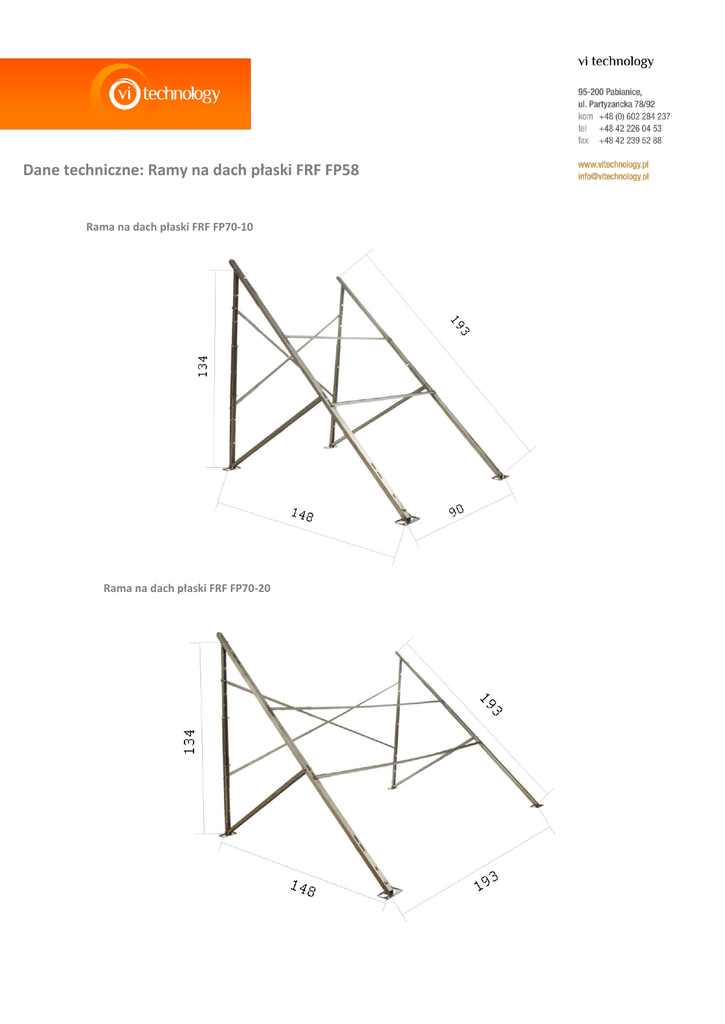 Dane techniczne: Ramy na dach płaski FRF FP58 Rama na dach płaski FRF FP70-10 Rama na dach płaski FRF FP70-20