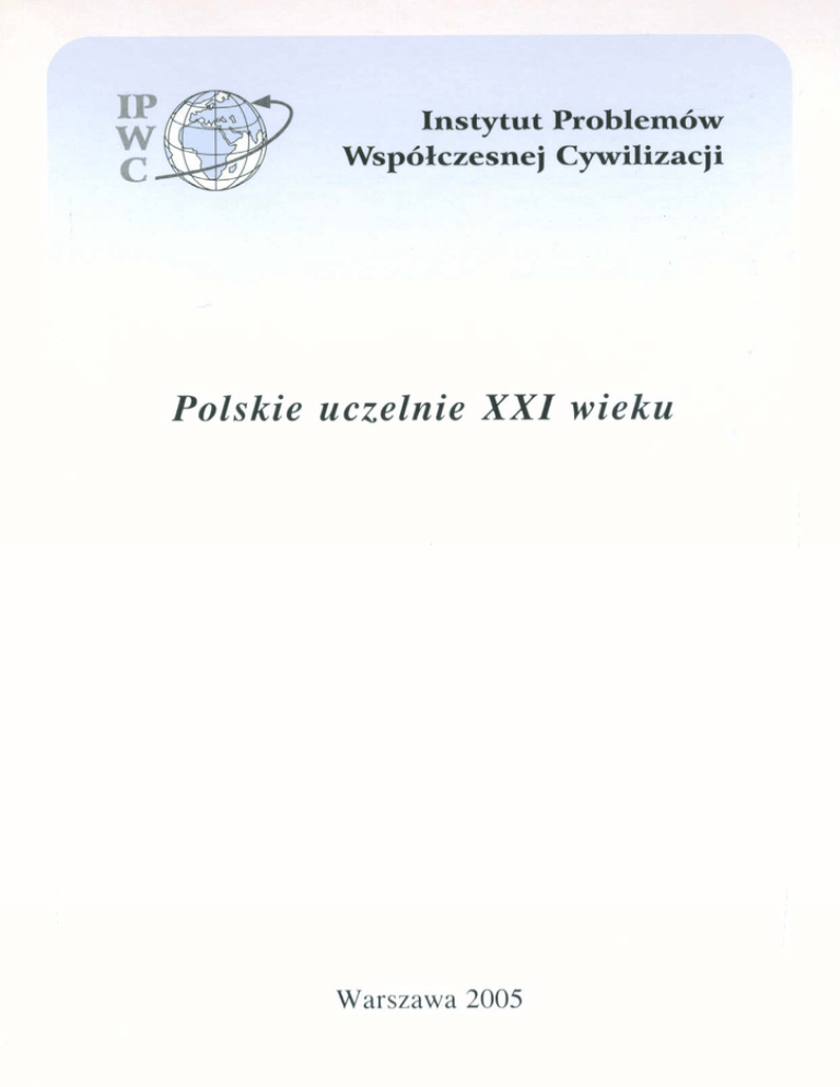 Instytut Problemów Współczesnej Cywilizacji jest międzyuczelnianą jednostką wykonującą zadania badawcze, edukacyjne i organizacyjne. Instytut działa od roku 1996 na podstawie porozumienia zawartego przez: • Akademię Medyczną w Warszawie, • Politechnikę Warszawską, • Szkołę Główną Gospodarstwa Wiejskiego, • Szkołę Główną Handlową, • Uniwersytet Warszawski. Instytut dziala na rzecz uczelni założycielskich oraz środowiska akademickiego Warszawy, a także innych instytucji akademickich i naukowych, krajowych i zagranicznych. Nadzór nad Instytutem sprawuje Kolegium Instytutu. Instytut prowadzi studia nad społecznym rozumieniem problemów współczesnej cywilizacji, prognozuje wpływ rozwoju nauki i techniki w erze informacji na przyszły kształt społeczeństwa, a w szczególności społeczności akademickiej, podejmuje działania zmierzające do pogłębienia świadomości społecznej, działa na rzecz rozwoju i integracji środowiska akademickiego. Instytut wykonuje swoje działania przez: • organizowanie i prowadzenie badań naukowych, • opracowywanie studiów, analiz i raportów oraz udostępnianie i rozpowszechnianie ich wyników, • organizowanie konferencji i seminariów środowiskowych, krajowych i zagranicznych, • organizowanie szkoleń dotyczących spraw akademickich oraz kształcenia ustawicznego, • opracowywanie i prowadzenie interdyscyplinarnych zajęć dydaktycznych dla studentów uczelni wyższych. Instytut współpracuje z innymi uczelniami, organizacjami oraz instytucjami krajowymi i zagranicznymi. Instytut Problemów Współczesnej Cywilizacji XXXII Polskie uczelnie XXI wieku Warszawa, wrzesień 2005 ISBN 83-89871-02-5 c Copyright by Instytut Problemów Współczesnej Cywilizacji Adres: Instytut Problemów Współczesnej Cywilizacji ul. Koszykowa 80 02-008 Warszawa tel. (22) 660-70-07 fax (22) 660-70-08 e-mail: [email protected] Opracowanie redakcyjne i skład: BETEX, ul. Irzykowskiego 2/100, 01-317 Warszawa, tel. (22) 665-09-22 Druk: Wydawnictwo SGGW, ul. Nowoursynowska 166, 02-787 Warszawa, tel. (22) 847-28-92 Szanowni Czytelnicy! Stałym elementem pracy Instytutu są dyskusje na temat aktualnego i przyszłego modelu szkolnictwa wyższego. Dotyczą one przede wszystkim szkół wyższych w Polsce, rozpatrywanych na tle sytuacji w innych krajach, szczególnie europejskich. W tym opracowaniu chcemy się podzielić pewnymi przemyśleniami sformułowanymi przez zespół pracowników Instytutu (prof. Marek Dietrich, dr Anna Jankowska, dr Inga Oleksiuk, prof. Jerzy Osiowski, prof. Tomasz Szapiro) na temat polskich szkół wyższych u progu XXI wieku. Uczestnicy dyskusji prezentują oczywiście różne poglądy, często sprzeczne. Wiele jednak było na tyle bliskich, że możliwe było porozumienie się i sformułowanie przedstawionych tez. Jest sprawą oczywistą, że nie mogą one dotyczyć wszystkich aspektów szkolnictwa wyższego. Marek Dietrich Dyrektor Instytutu Problemów Współczesnej Cywilizacji POLSKIE UCZELNIE XXI WIEKU WSTĘP 1. Zakończyły się prace legislacyjne nad nową ustawą Prawo o Szkolnictwie Wyższym. Prawo to porządkuje (lepiej czy gorzej) aktualne przepisy i usuwa wiele niedostatków, nie wynika z niego jednak oczywiście pełna wizja szkolnictwa wyższego odpowiadająca potrzebom XXI wieku. Szkoły wyższe mogą działać zgodnie z nową ustawą. Niestety, już obecnie zgłaszane są postulaty o potrzebie, w krótkim czasie, nowelizacji Prawa usuwającej jego niedostatki, co grozi destabilizacją systemu szkolnictwa wyższego. Po to jednak, żeby można było ukształtować wizję szkolnictwa wyższego i w konsekwencji nadać mu odpowiednie uregulowania prawne, czyli za kilka lat wprowadzić nową ustawę, dyskusja powinna zacząć się już dzisiaj. Chcąc od razu włączyć się do takiej dyskusji, przedstawiamy pewne tezy i rozważania ogólne dotyczące spraw istotnych dla pełnego i realnego obrazu kształcenia na poziomie wyższym na obecnym etapie rozwoju cywilizacyjnego. Oczywiście nie obejmują one całej problematyki szkolnictwa wyższego1 . 2. Potrzeba zdefiniowania miejsca i roli uczelni w XXI wieku staje się coraz bardziej wyraźna. Nie jest to nowy problem – kwestia dostosowania modelu kształcenia do potrzeb przyszłych społeczeństw wpisuje się w wielosetletnią tradycję uniwersytecką. Zmiany należy uznać za integralny element życia uczelni. Doświadczenie historyczne pokazuje jednak, że nie wszystkie pokolenia umiały poradzić sobie z koniecznością antycypowania kierunków przeobrażeń społecznych. Skutkiem ich pasywnej postawy 1 W sierpniu 2005 roku, równocześnie z naszym opracowaniem, pojawił się dokument Ministerstwa Edukacji Narodowej i Sportu pt. Strategia rozwoju edukacji na lata 2007-2013. Niektóre sprawy przedstawione tutaj są poruszone również w tamtym dokumencie. 6 Polskie uczelnie XXI wieku lub inicjowania działań pozornych były lata zastoju: życie intelektualne kostniało lub przenosiło się poza mury uczelni. 3. Poziom wykształcenia coraz wyraźniej determinuje pozycję i perspektywy jednostki w tworzącym się społeczeństwie wiedzy – brak wykształcenia drastycznie ogranicza jej szanse na pomyślną przyszłość. I chociaż dyplom wyższej uczelni przestał być już gwarantem kariery zawodowej, to studia stają się powszechnie uznaną koniecznością. Stawia to społeczność akademicką w sytuacji szczególnej odpowiedzialności. 4. Dynamiczny postęp naukowy, komercjalizacja procesu tworzenia i rozpowszechniania dóbr intelektualnych, rozwój globalnej gospodarki oraz możliwości i zagrożenia związane ze zderzeniem cywilizacji o różnych hierarchiach wartości tworzą jakościowo nowy kontekst dla rozwoju polskich uczelni XXI wieku. Zmieniające się uwarunkowania mogą wstrząsnąć fundamentami, na których opierała się dotychczasowa działalność akademicka. A przecież nie brak i wewnętrznych problemów społeczności ucz