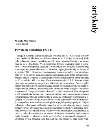 artykuły Marek Wierzbicki (Warszawa) Powstanie skidelskie 1939 r. Rozpad systemu komunistycznego w końcu lat 80. XX wieku stworzył nowe możliwości badawcze dla historyków, m.in. II wojny światowej. Zniknęły polityczne bariery utrudniające lub wręcz uniemożliwiające naukowe badania w tej dziedzinie. W szczególności dotyczy to dziejów ziem wschodnich II Rzeczypospolitej, zajętych i włączonych do Związku Radzieckiego w następstwie paktu Ribentrop — Mołotow i agresji sowieckiej na Polskę 17 września 1939 r. Stopniowe udostępnianie badaczom byłych sowieckich archiwów, a co za tym idzie, ujawnianie wielu nieznanych dotąd dokumentów, zmienia optykę widzenia wydarzeń i procesów historycznych, które nastąpiły po 17 września 1939 r. na tzw. Kresach wschodnich II RP. Równocześnie ujawniają się problemy dotychczas oficjalnie nie zauważane. Poszczególne narody i społeczeństwa zamieszkujące ziemie wschodnie przedwojennej Polski prezentują własne, niejednokrotnie sprzeczne wizje dziejów stosunków wzajemnych. Dotyczy to także okresu II wojny światowej. Historia spełnia w ich rozumieniu ważną rolę, ponieważ niejako służy umacnianiu poczucia tożsamości narodowej, usprawiedliwia układ geopolityczny współcześnie istniejący na tym terytorium, wreszcie dostarcza argumentów dla ochrony racji stanu państw o stosunkowo niedługiej tradycji niepodległego bytu. Niejednokrotnie polski punkt widzenia napotyka niezwykle silną opozycję; padają przeciwstawne stwierdzenia, czasem oskarżenia. Poglądy w dziedzinie historii najnowszej tej części Europy środkowo-wschodniej prowadzą niekiedy do ostrych polemik rzutujących na kształt bieżących stosunków dyplomatycznych. Ponadto — ubrane w szatę stereotypów i wzajemnych uprzedzeń — utrudniają trwałe zbliżenie sąsiadujących ze sobą narodów. Stąd coraz więk- 75 sza rola rzetelnych badań historycznych, mogących przynieść odpowiedź na pytanie: gdzie leży prawda, a przez ustalenie prawdy pomóc w budowie przyjaznych stosunków między narodami tej części Europy. Podczas II wojny światowej ziemie północno-wschodnie II RP stały się obszarem konfrontacji sprzecznych interesów państw, grup narodowościowych i społecznych. Chodzi tu przede wszystkim o Litwę, Polskę i ZSRR, oraz Białorusinów, Litwinów, Polaków, Ukraińców i Żydów. Ten skomplikowany obraz uzupełniały przeciwstawne dążenia właścicieli ziemskich (głównie narodowości polskiej) i ubogiego chłopstwa (na tym terenie głównie białoruskiego), polskiej inteligencji — stanowiącej podporę państwa polskiego na tym obszarze oraz upośledzonego społecznie i politycznie proletariatu żydowskiego. Ta szczególnie gwałtowna konfrontacja ujawniła się już podczas kampanii wrześnowej 1939 r. W niniejszym artykule chciałbym zająć się małym, choć bardzo charakterystycznym, fragmentem dziejów stosunków polsko-białorusko-żydowskich z lat 1939-1941. Jest nim tzw. powstanie skidelskie1 czyli zbrojne wystąpienie antypolskie ludności białoruskiej i żydowskiej w miasteczku Skidel i jego okolicach (przedwojenny powiat grodzieński, województwo białostockie) w pierwszych dniach po wkroczeniu Armii Czerwonej na terytorium II RP (17 września 1939 r.). Po 17 września 1939 r. na Grodzieńszczyźnie doszło do szeregu zbrojnych wystąpień antypolskich. W wielu wsiach, osadach i miasteczkach pojawiły się grupki uzbrojonych mężczyzn z czerwonymi opaskami na rękawach. Najczęściej byli to działacze, członkowie i sympatycy Komunistycznej Partii Zachodniej Białorusi zdelegalizowanej przez Międzynarodówkę Komunistyczną (a raczej przez Stalina) w 1938 r. Dołączyło do nich wielu więźniów, zarówno politycznych jak i kryminalnych, zbiegłych z nie strzeżonych więzień, zwłaszcza z niedalekiego Grodna. W tych zbrojnych grupach na terenie wiejskim pod względem narodowościowym dominowali Białorusini, zaś na obszarze małych miasteczek znaczny odsetek stanowili przedstawiciele proletariatu żydowskiego. Wkrótce Grodzieńszczyzna stała się terenem krwawych zajść: grupy uzbrojonych rebeliantów napadały na majątki ziemskie, gospodarstwa osadnicze, posterunki policji, urzędy gminne a nawet na drobne oddziałki Wojska Polskiego. Nie obyło się bez morderstw. Jedni ginęli, ponieważ stawiali opór broniąc swojego mienia, czci, rodziny lub na skutek odmowy oddania broni. Inni byli zabijani z powodu przynależności do klas posiadających (ziemianie) albo ścisłego związku z przedwojennym państwem pol1 76 W historiografii polskiej i sowieckiej p rzyjęły się odmienne okreś lenia wydarzeń w Skidlu: „rebelia” (określenie strony polskiej) podkreśla nielegalny i antypaństwowy charakter wystąpień skidelskich, zaś „powstanie” (pojęcie używane przez stronę sowiecką) sugeruje legalny — z punktu widzenia praw Białorusinów do terytorium „Zachodniej Białorusi” — charakter tych wystąpień. To samo dotyczy pojęć „powstańcy” i „partyzanci” wprowadzonych przez stronę sowiecką. skim (policjanci, urzędnicy państwowi i samorządowi, oficerowie, osadnicy, duchowni katoliccy i prawosławni). W obydwu przypadkach ofiarami byli w znacznej większości Polacy, bo na nich opierała swoją władzę na Kresach Wschodnich Druga Rzeczpospolita2 . Nie znamy w szczegółach przebiegu tych tragicznych wydarzeń, ale nawet opisy jednostkowych zajść budzą przerażenie i dezaprobatę. Niektórzy ziemianie zostali zamordowani w sposób wyjątkowo bestialski np. zamieszkujące w majątku Brzostowica Mała małżeństwo Wołkowickich po brutalnym pobiciu napastnicy zakopali żywcem3 . Tragiczny los spotkał również polskich osadników wojskowych z osady Lerypol, oddalonej o kilka kilometrów od Skidla. 21 września 1939 r. wkroczyła tam uzbrojona grupa białoruskich partyzantów aresztując niemal wszystkich obecnych mężczyzn. Wg zapewnień członków te