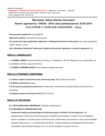 Warszawa: Zakup biletów lotniczych Numer ogłoszenia: 140530