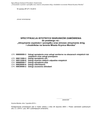SIWZ oczyszczanie miasta Krynica Morska w latach 2014