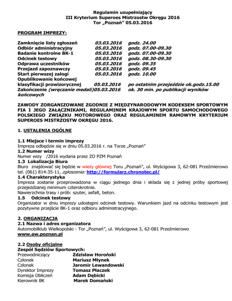 Regulamin uzupełniający - Automobilklub Wielkopolski