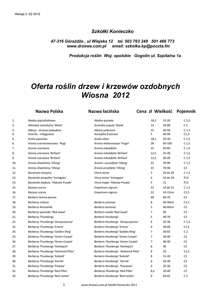 Oferta roślin drzew i krzewów ozdobnych Wiosna 2012