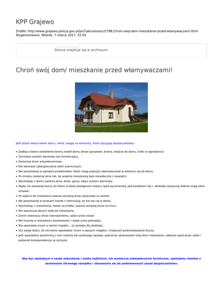 KPP Grajewo Chroń swój dom/ mieszkanie przed włamywaczami!